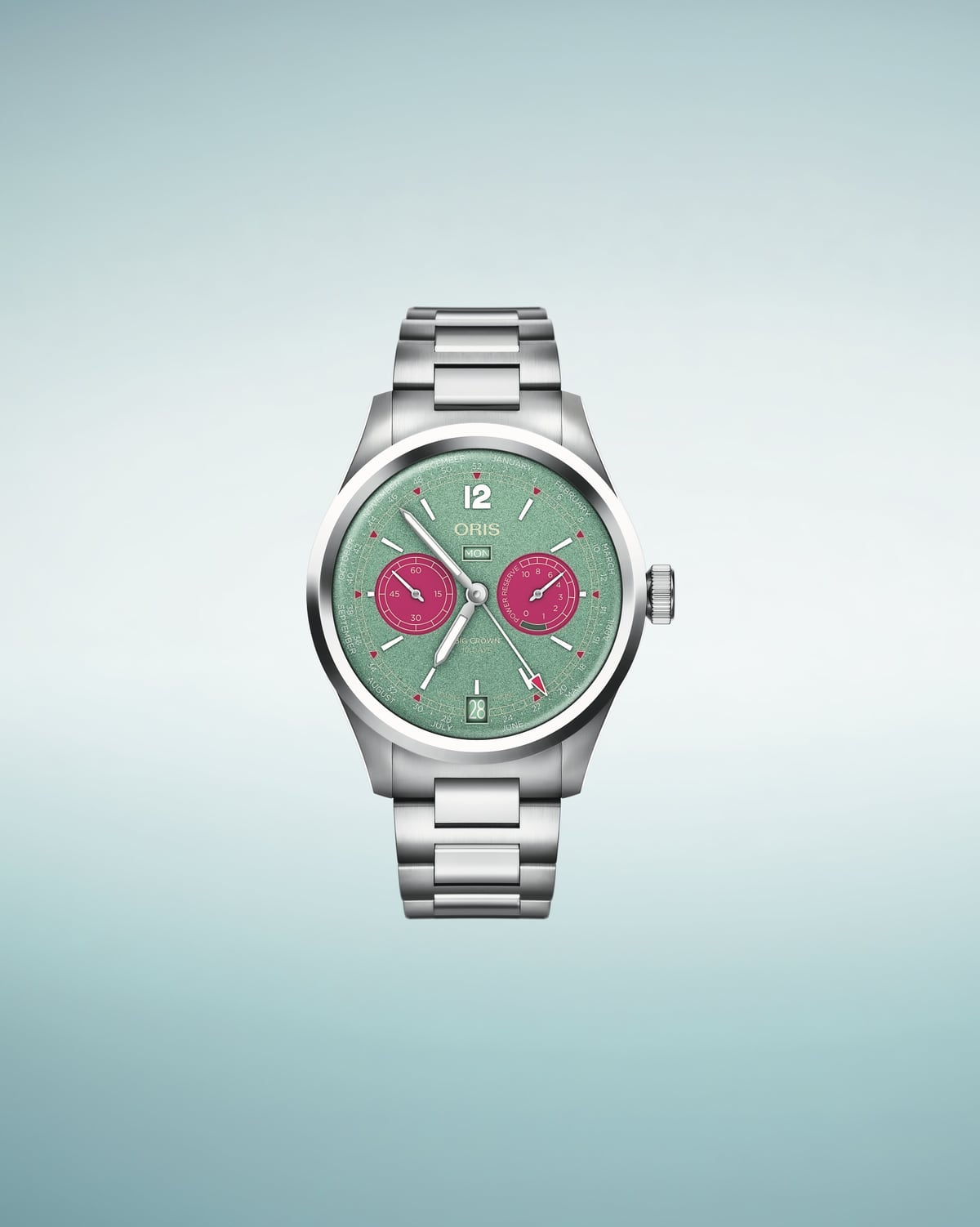 Oris, esa marca suiza que hasta no hace mucho, unos 5 años aproximadamente, era, como muchas otras marcas de la misma nacionalidad, el paradigma de la ortodoxia relojera, más seria que una carta certificada de la Agencia Tributaria. En su catálogo imperaban los diales negros y blancos, y como nota de color se permitían la licencia de incluir alguno azul o verde. Menudos hippies relojiles se estaban volviendo![]()
