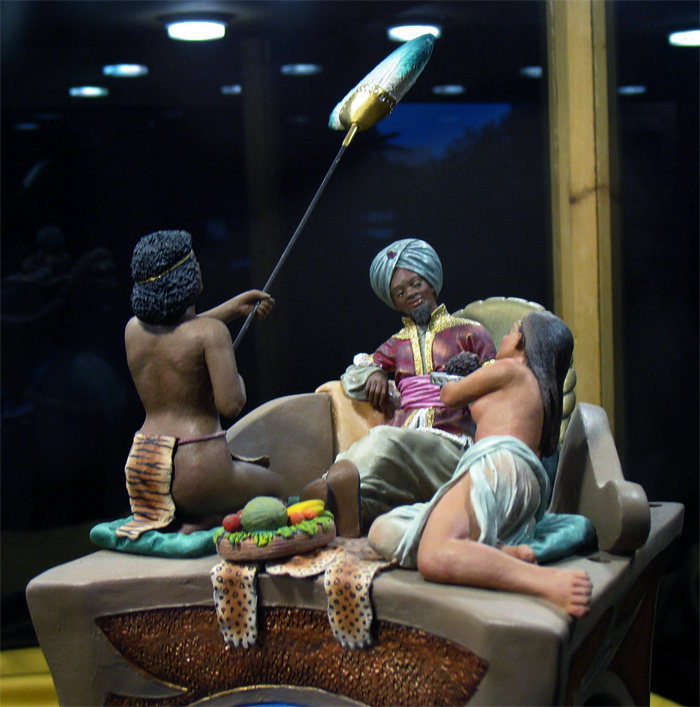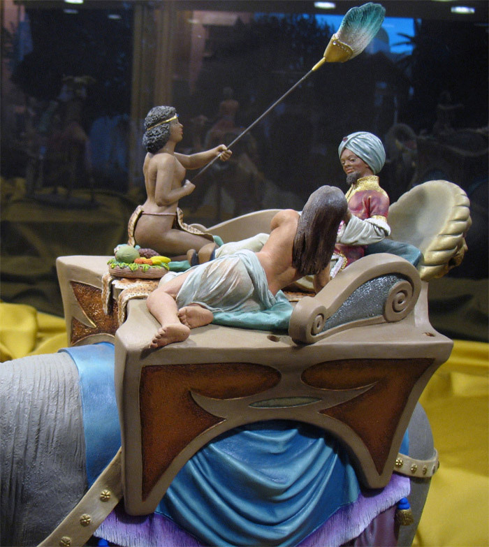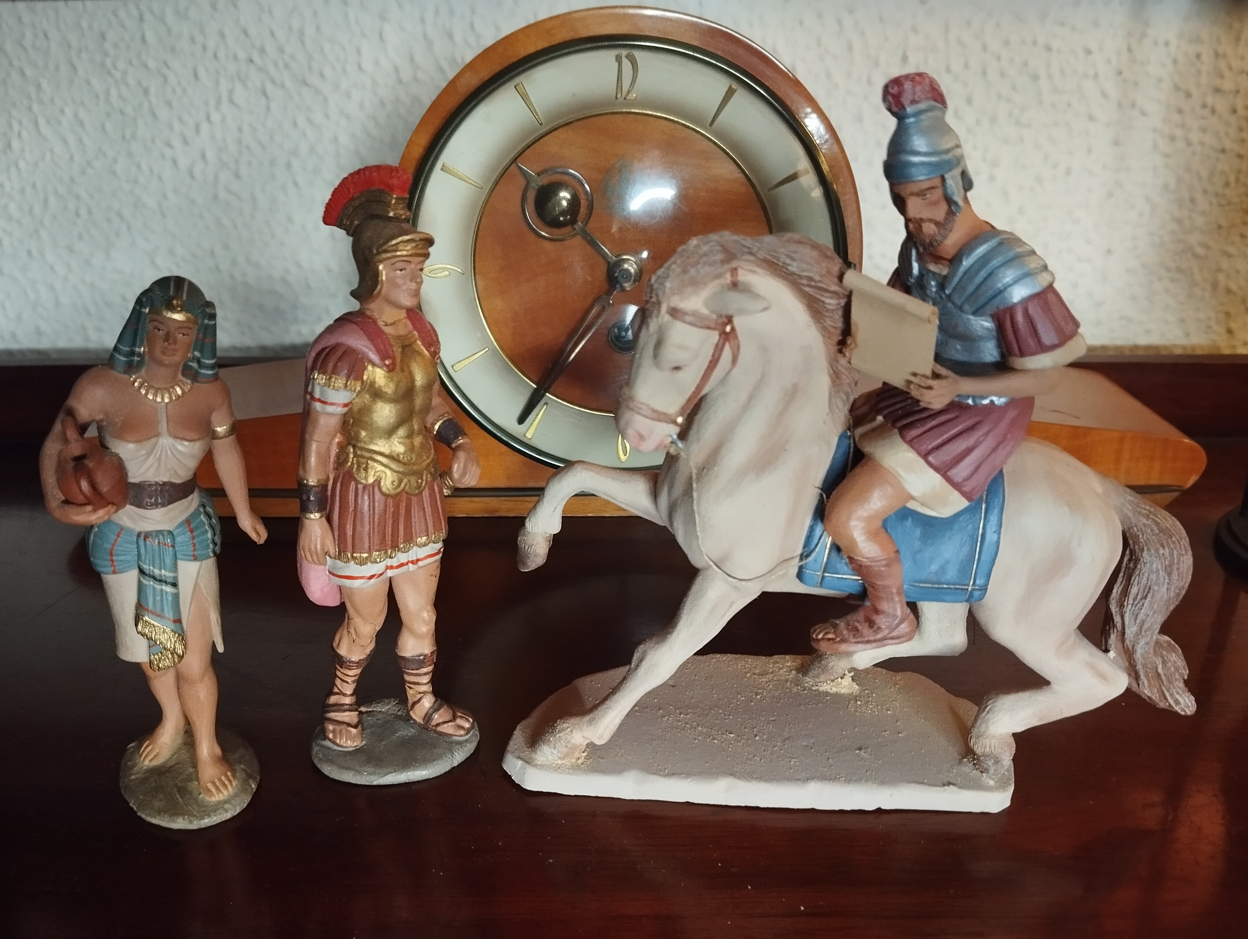 El romano a caballo vuelve a ser del taller Castells, pero el centurión y la esclava egipcia son de Daniel José padre, otro ilustrísimo figurista barcelonés, de Gracia, que hacía las figuras humanas más espectaculares, y el único que modelaba “tías buenas” (de hecho las mujeres las hacía su hijo, mucho mejor escultor, Daniel José Pons, hijo)