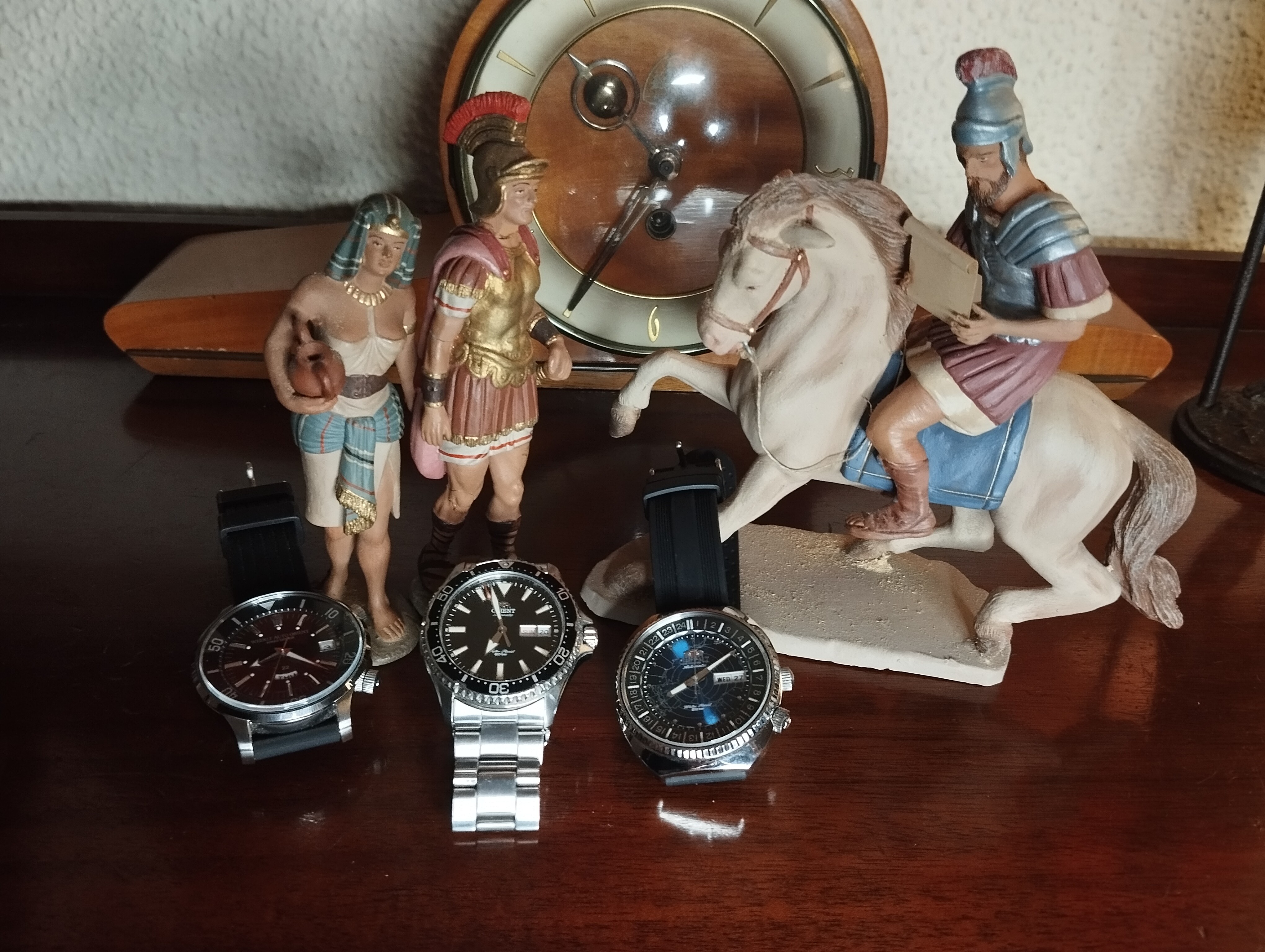 Los relojes, mis tres Orient, que compré a precio de escándalo y son preciosos (el Mako, en el foro). En relación calidad precio, a mi entender es la mejor marca de las actuales (en relojes automáticos)