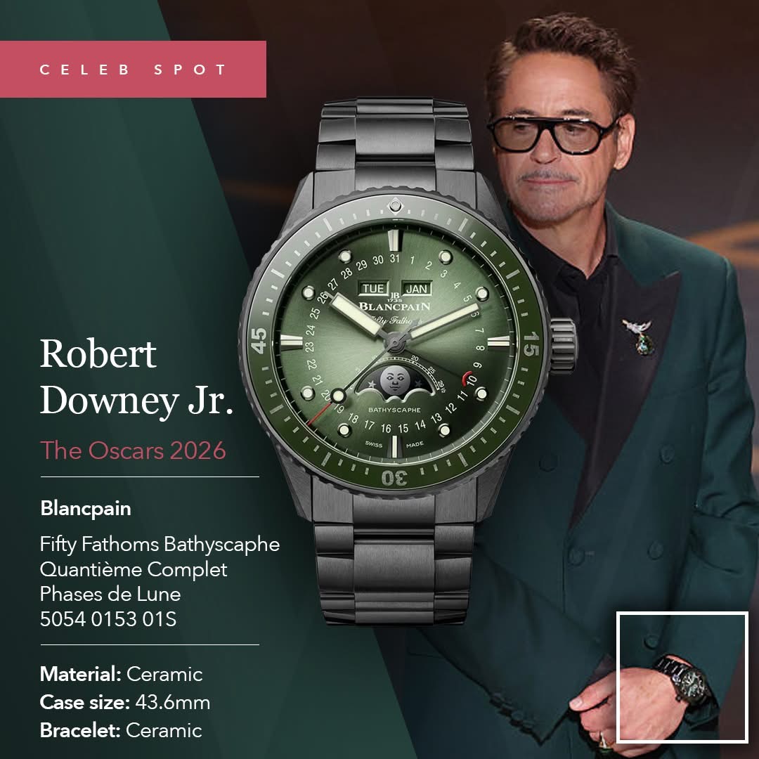 Préstamos a través de Estilistas: Si una celebridad no es embajadora oficial de una marca, entran en juego sus estilistas. Los estilistas negocian con marcas (como Cartier, IWC o Jaeger-LeCoultre, que tienen fuertes lazos con la industria del cine) para que les presten relojes de alta gama para la noche. Las marcas ceden estas piezas a cambio de la enorme publicidad que generan, y los actores simplemente los devuelven cuando termina el evento. El elegante Jaeger-LeCoultre Reverso de oro rosa que llevó Robert Downey Jr. cuando ganó su Oscar en 2024 encaja en esta categoría de piezas cuidadosamente seleccionadas para la alfombra roja.