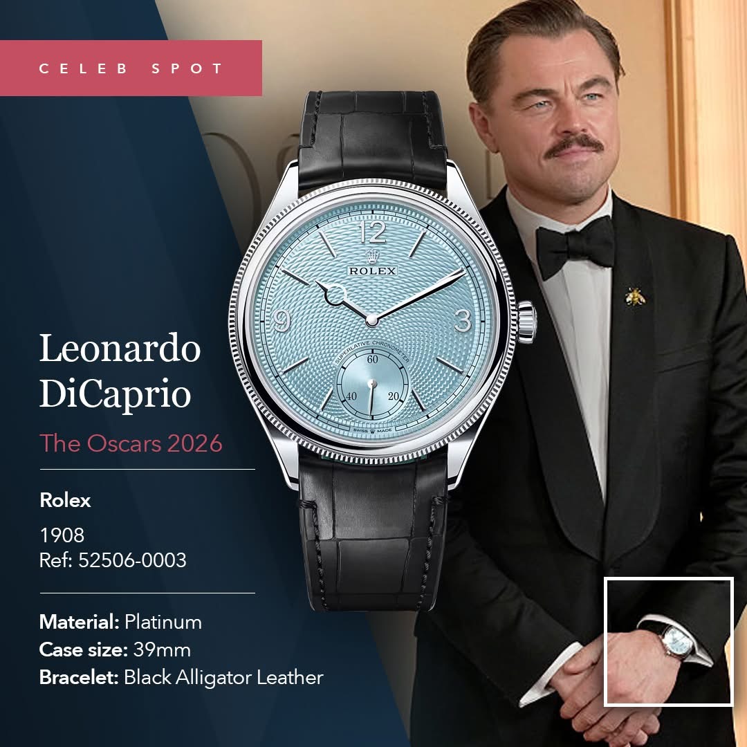 Leonardo DiCaprio: Es un ejemplo perfecto de esto. Recientemente se convirtió en embajador oficial (denominado “Testimonee”) de Rolex . Como parte de esta asociación, en los Oscar de 2026 acudió luciendo un exclusivo Rolex Perpetual 1908 fabricado en platino.
