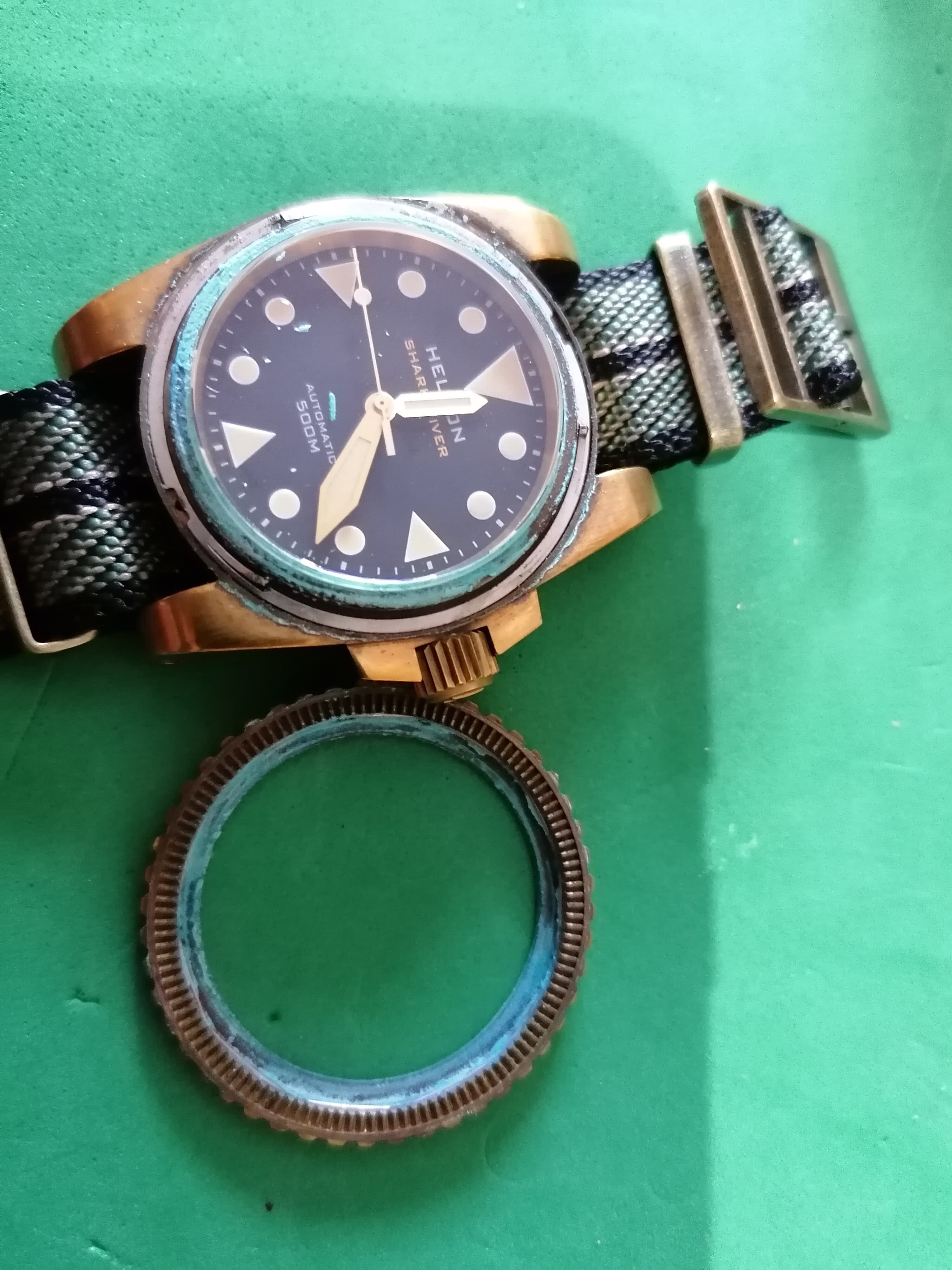Bueno, a la espera del DF, me he puesto a adecentar un diver que no me pongo nada porque me da rabia ese aspecto de guarro y además, no poder mover el bisel al estar atascado del óxido que crea el latón.