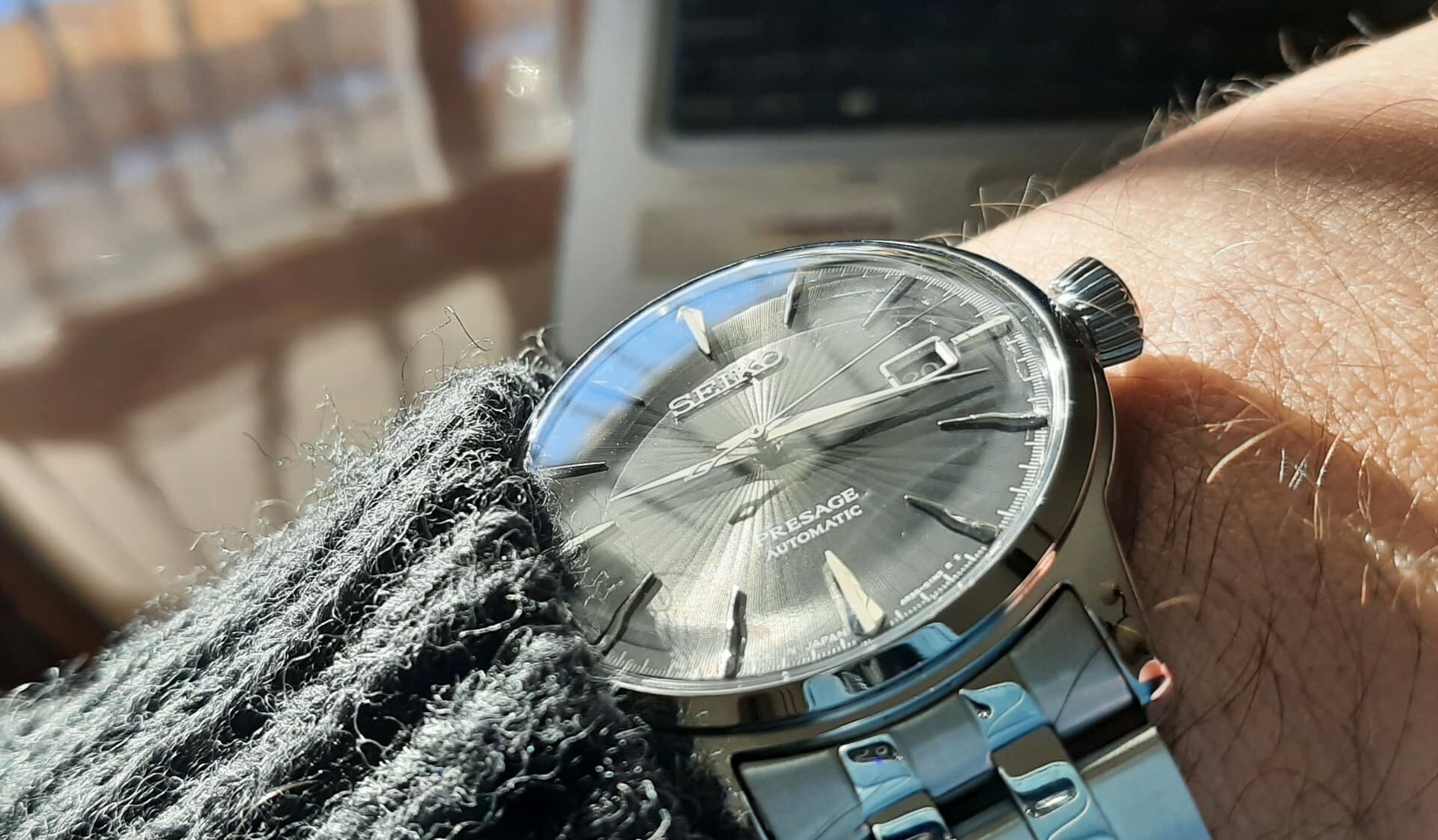 Sol de invierno. Hoy con este Presage a juego con mi chaqueta preferida (de lana de Aran, Irlanda, recuerdo de mi ultimo viaje allende la mar oceana)