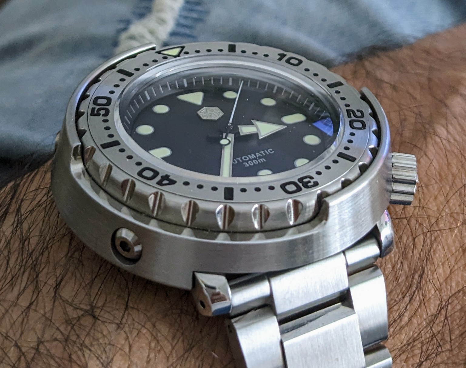 El único defecto que le veo es que con la bund y la forma de la caja queda muy expuesto: se ha llevado un estacazo contra una puerta que casi me da mal… probaré con una nato de piel, a ver cómo queda.