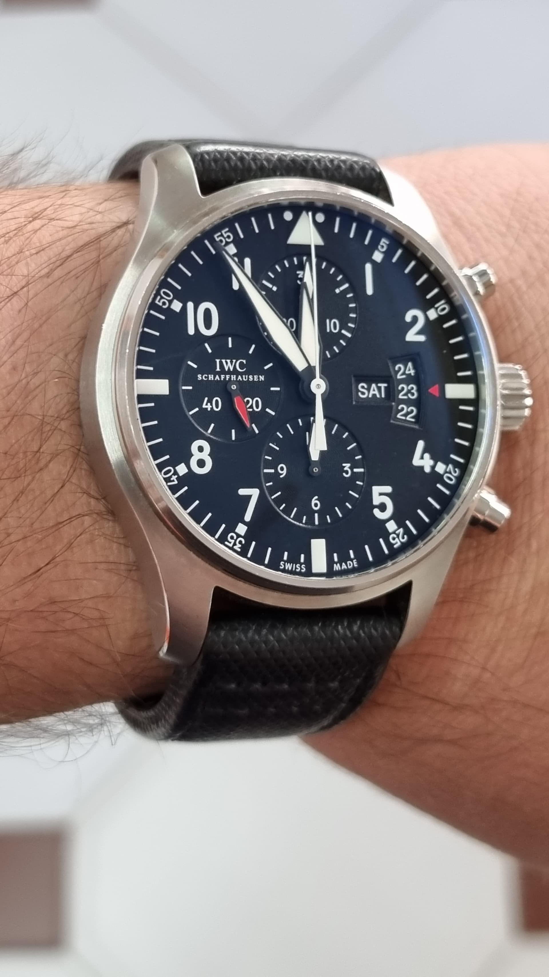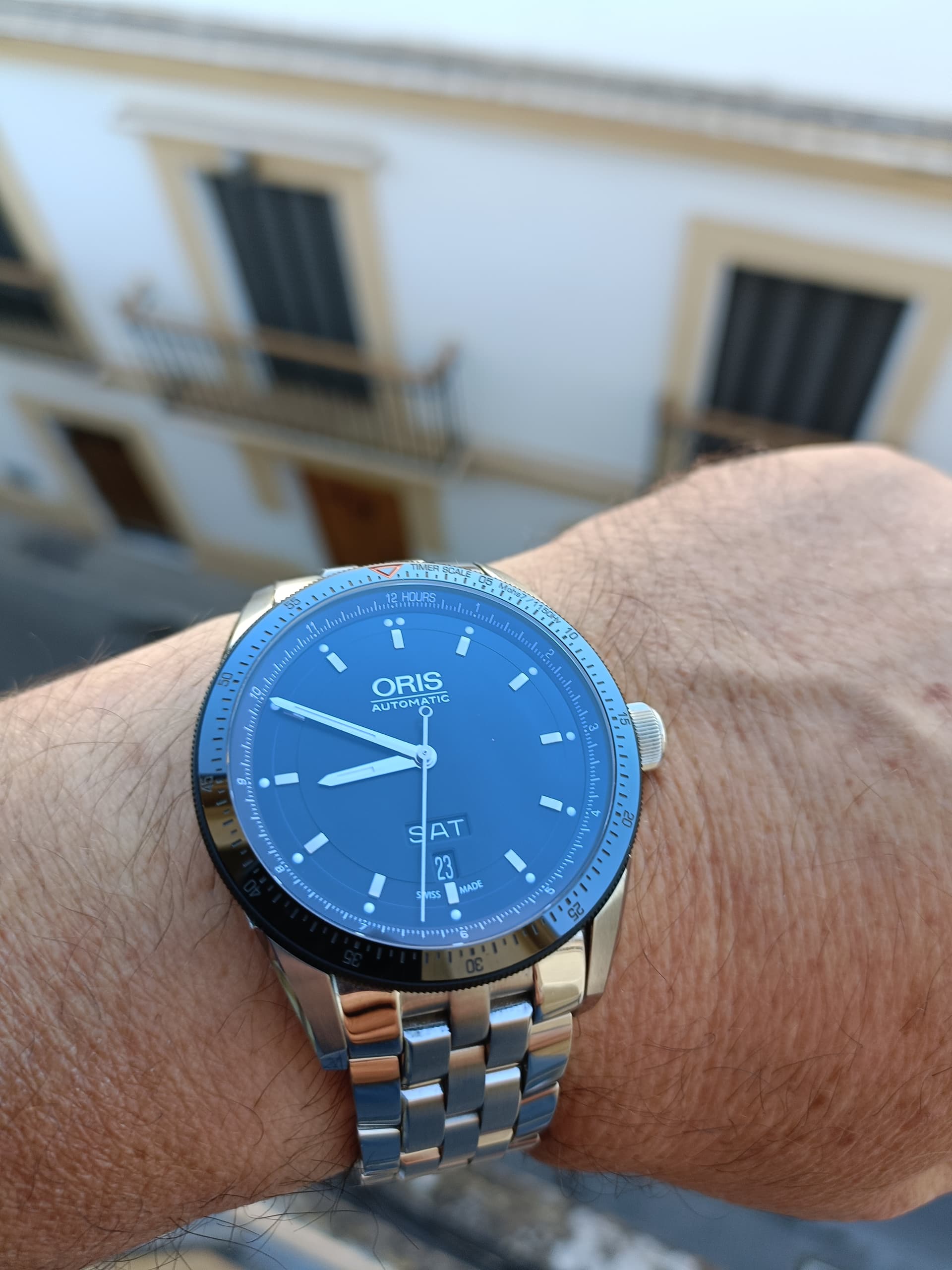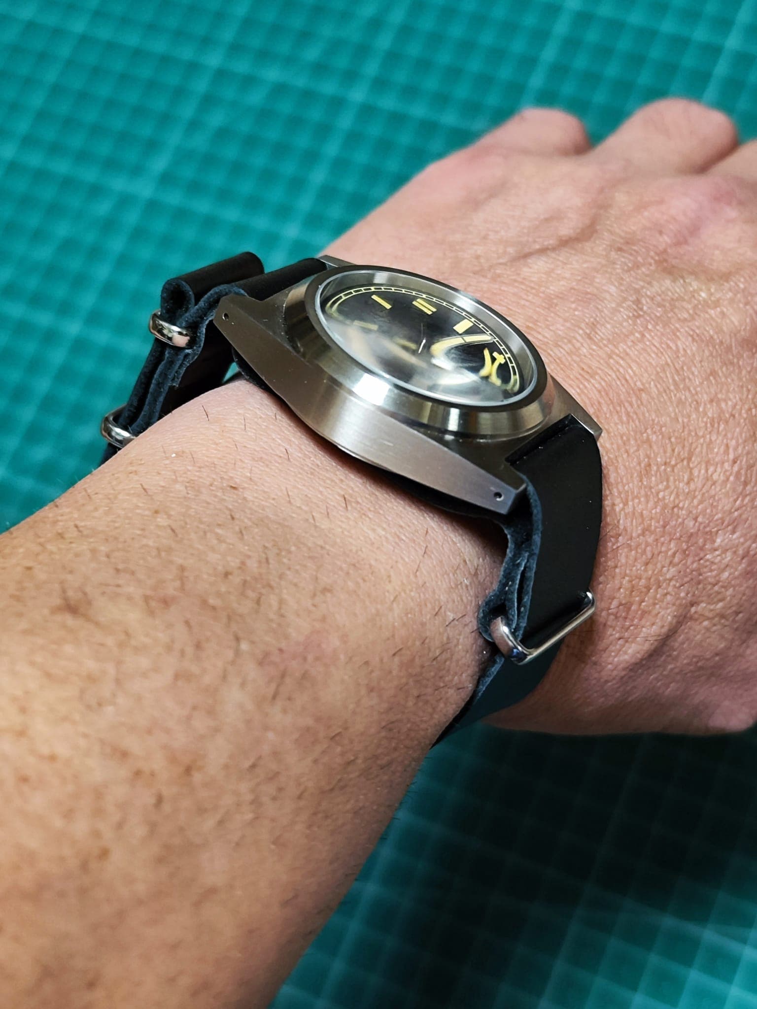 Yo estoy encantado, porque estoy acostumbrado a relojes más grandes. A mi me preocupaba verlo pequeño. Y no es que tenga malas medidas, es que las tiene mal colocadas y eso que fue un diseño que gustó tanto en Hodinkee, que hicieron una colaboración con Unimatic (el original).