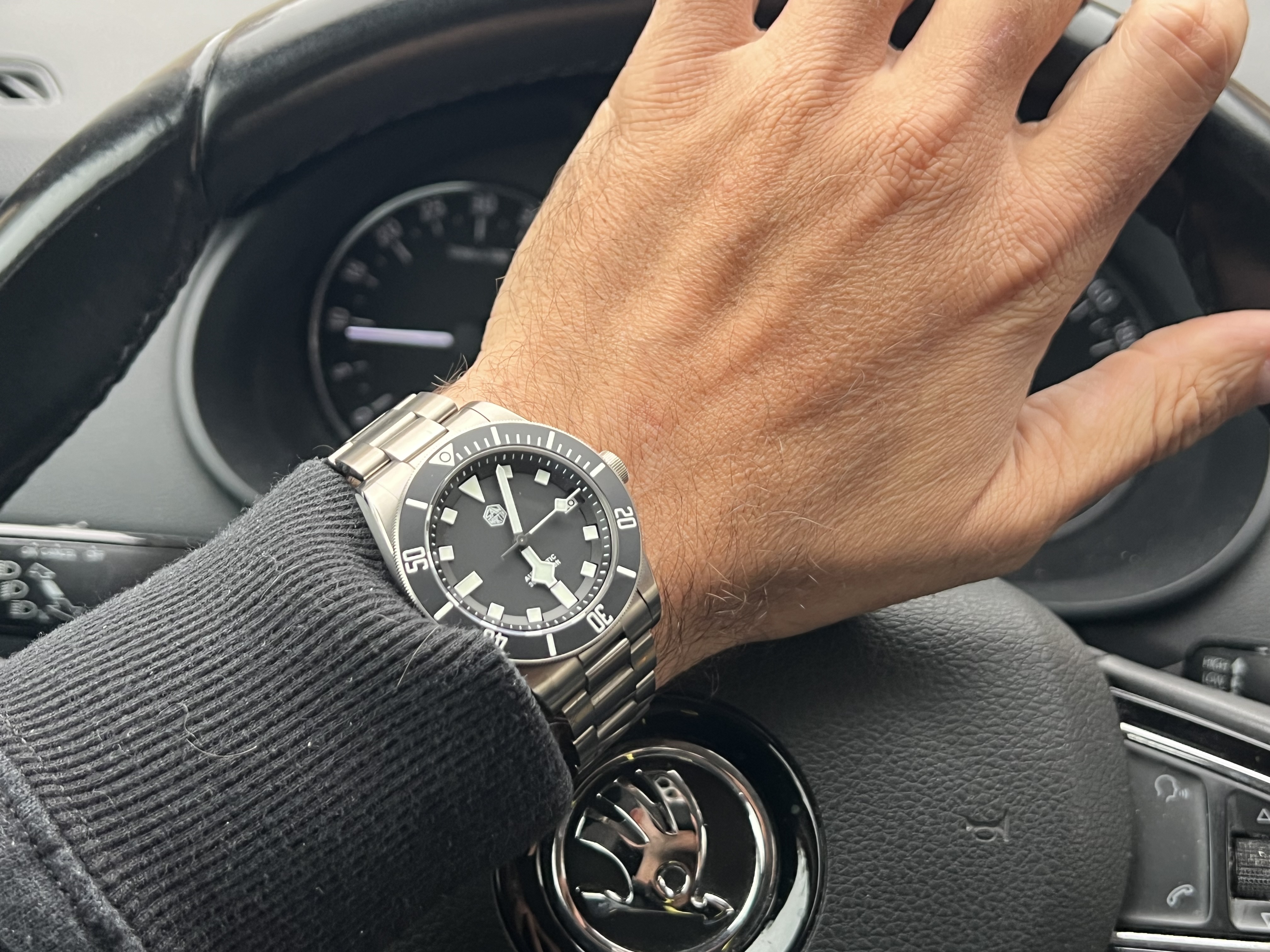 Es un super reloj que no le tiene que envidiar nada al Navitimer, que inteligente fue el señor Sinn durante la crisis del cuarzo, Breitling estaba en bancarrota y les compró los derechos de la patente del Navitimer para poder fabricarlo, y el resultado ha sido extraordinario, a mi entender, es un Navitimer mejorado, por la corona exterior para mover el bisel interno, eso le falta al Navitimer y le faltará siempre por muy bonito que lo hagan.