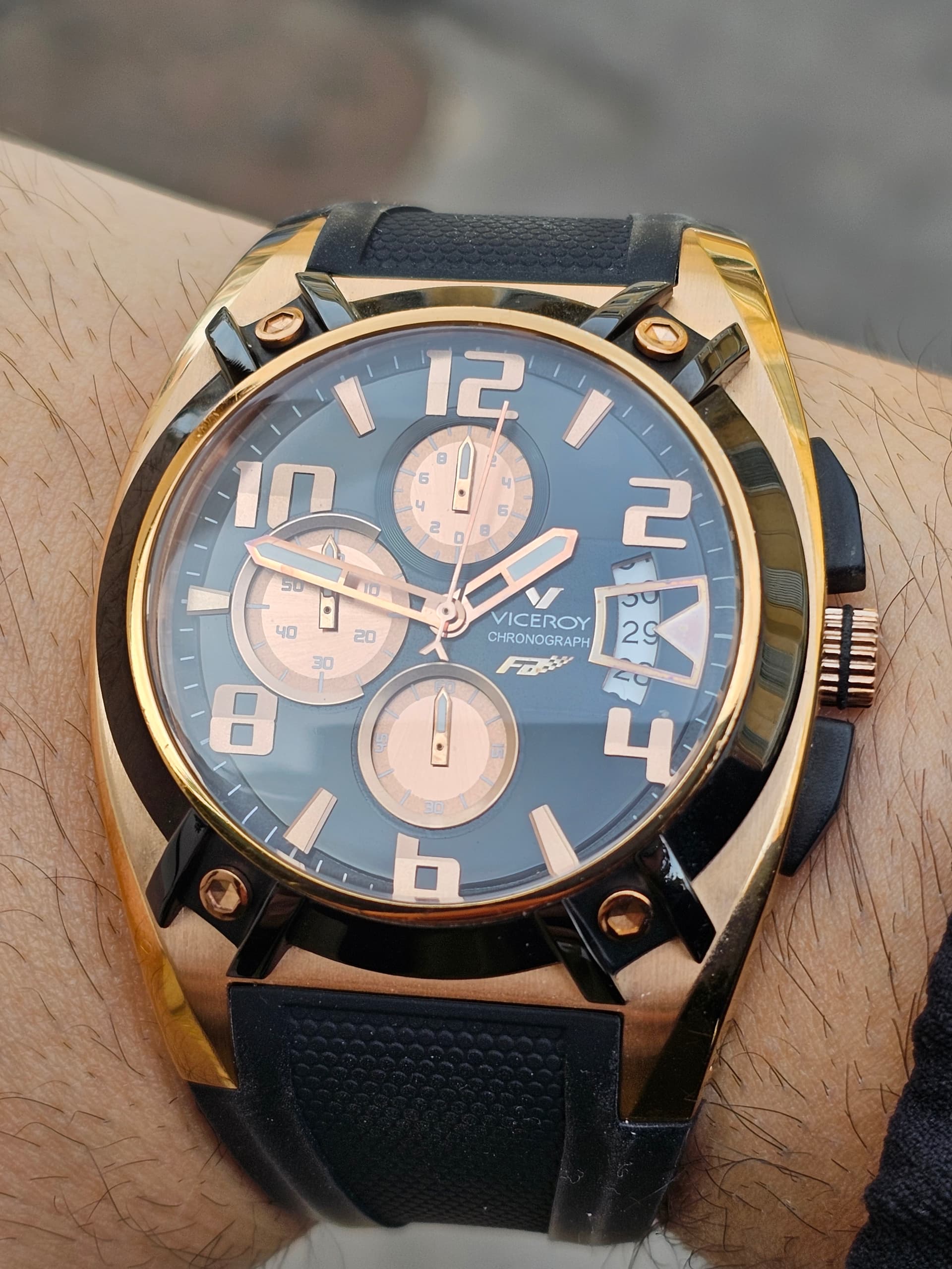 Es un 44 mm y creo recordar 15.6 de altura. Contundente pero a mí me resulta cómodo, por la forma de la caja.