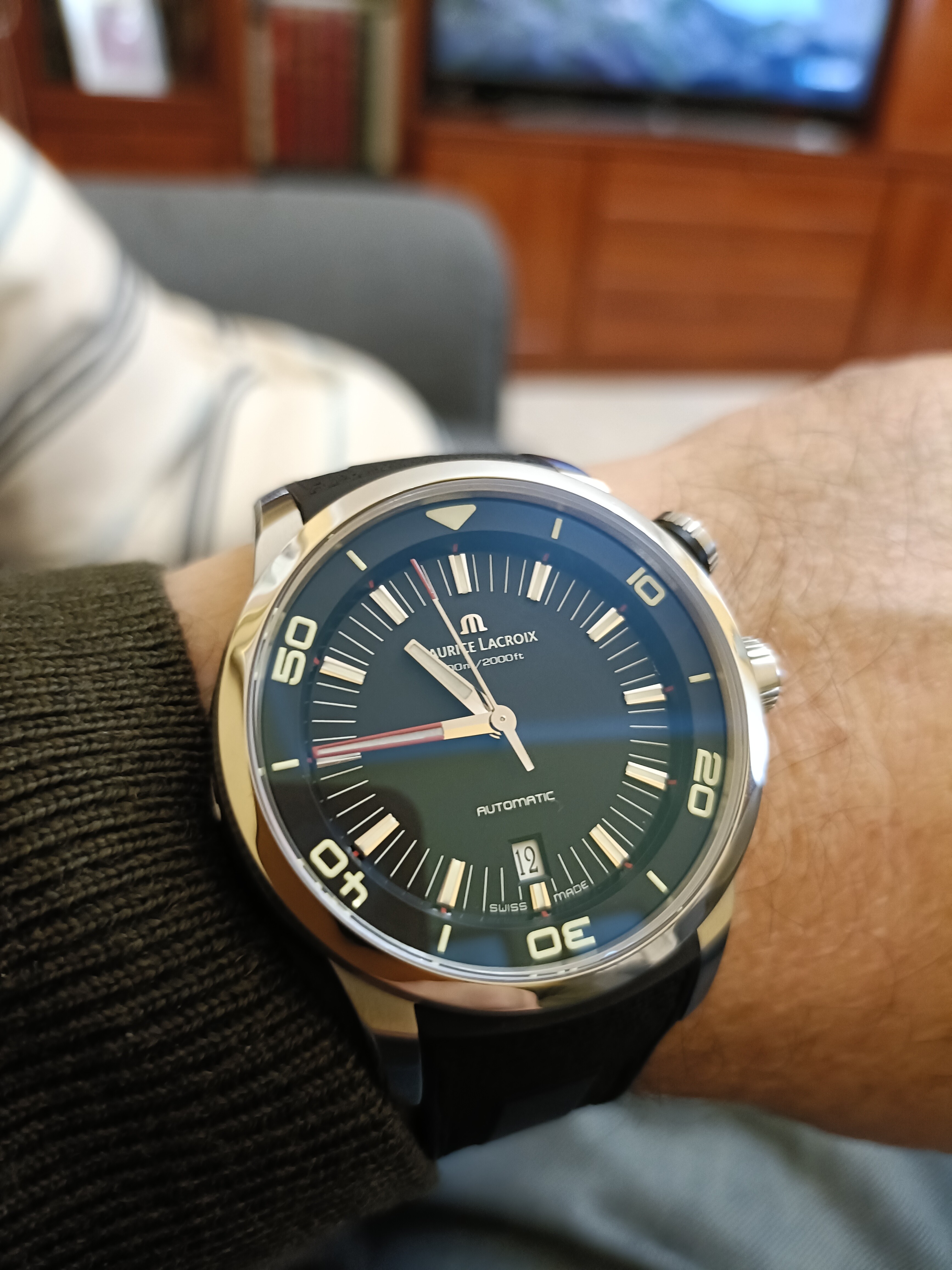 Hoy Mauricio Pontos S , un reloj de una calidad muy superior a lo que estamos acostumbrados, en mi opinión muy por encima de oris, Hamilton,longines , eterna etc. Además lleva el mejor antirreflejos que he visto. Buen domingo a todos.