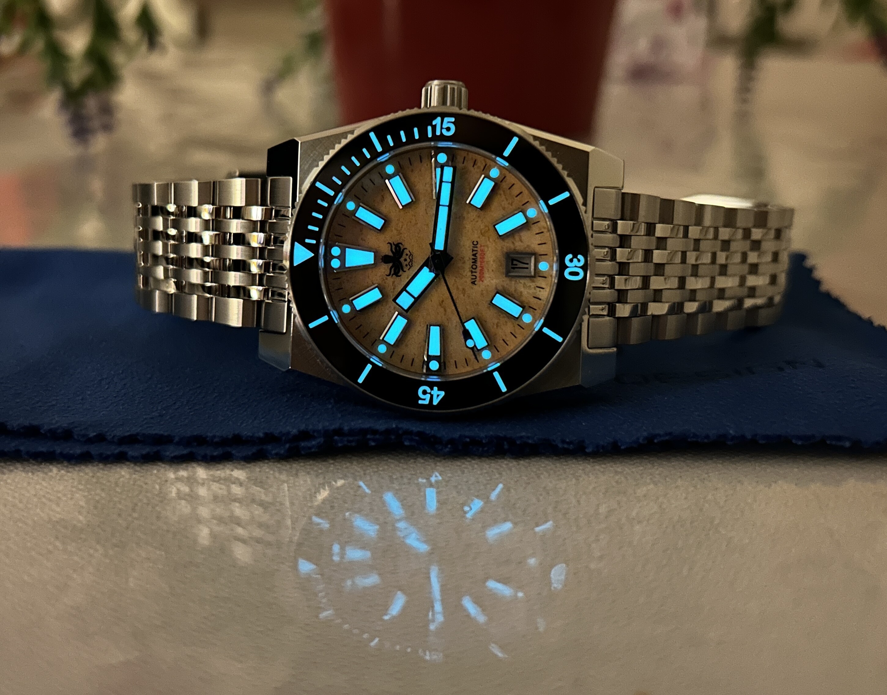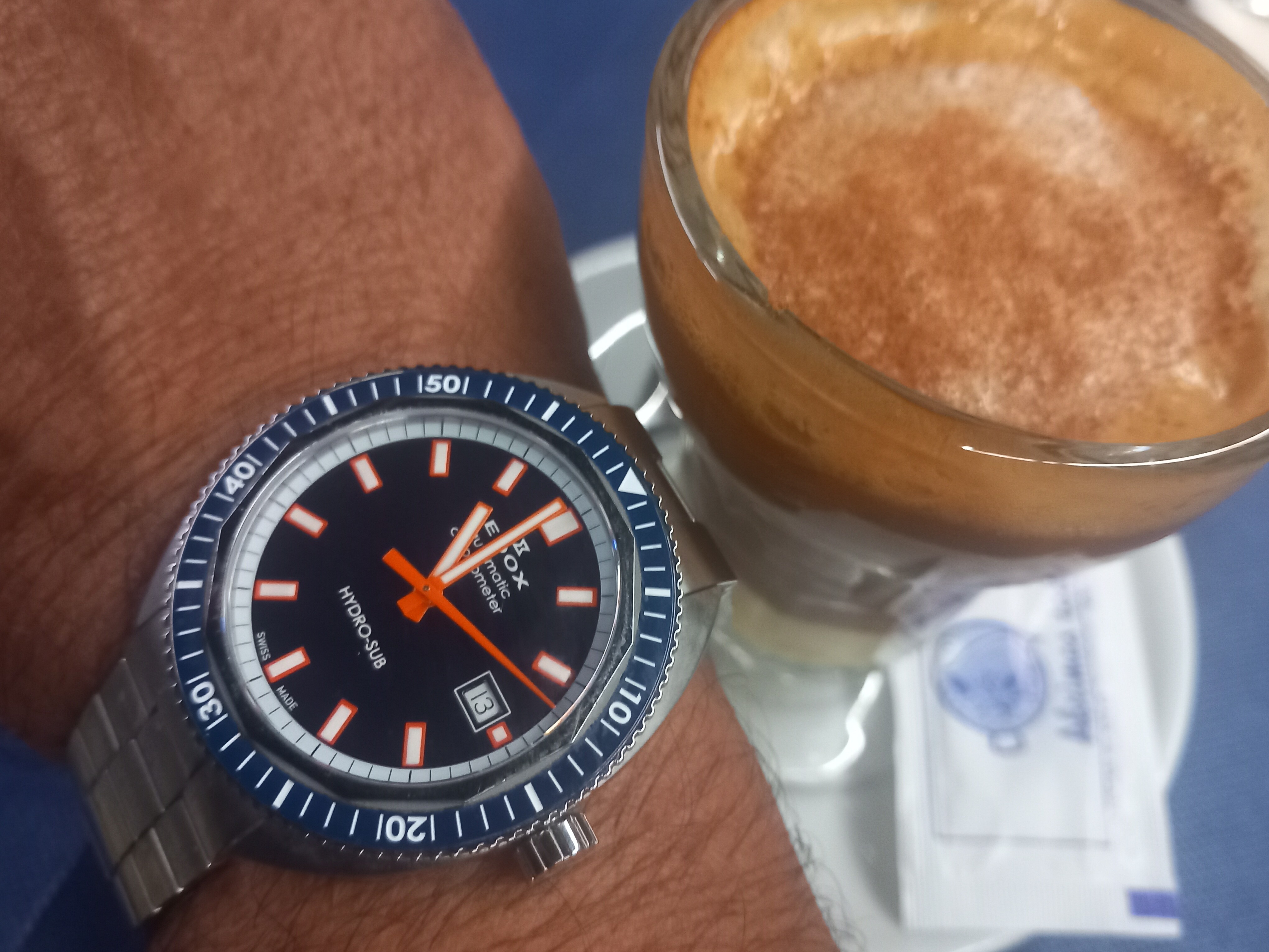 Buen domingo. Hoy mi diver elegante . Un relojazo . Que lo paséis bien y cuidado con estos calores . Aquí en el bajo Llobregat ( Barcelona ) estamos en temperaturas muy altas