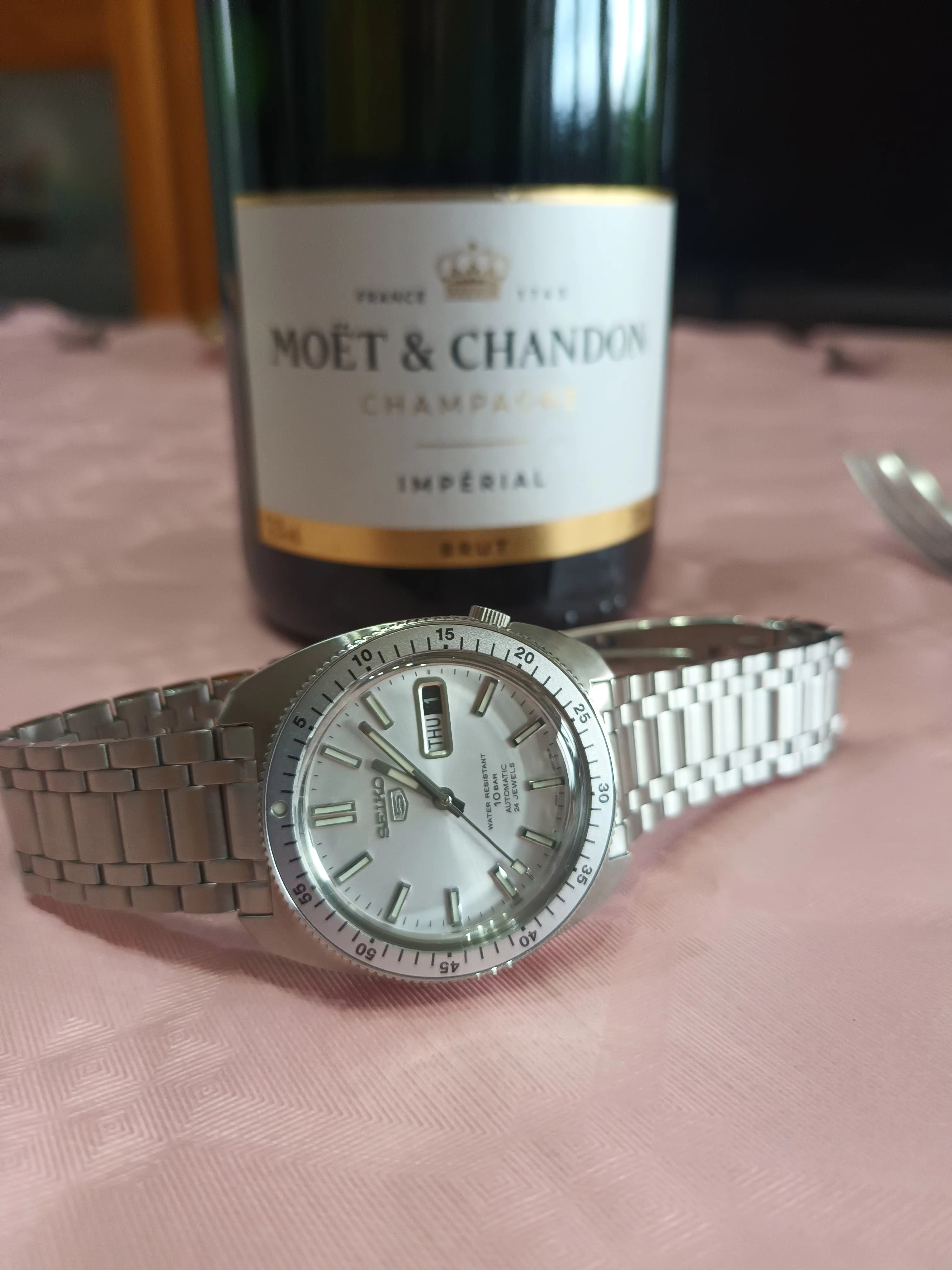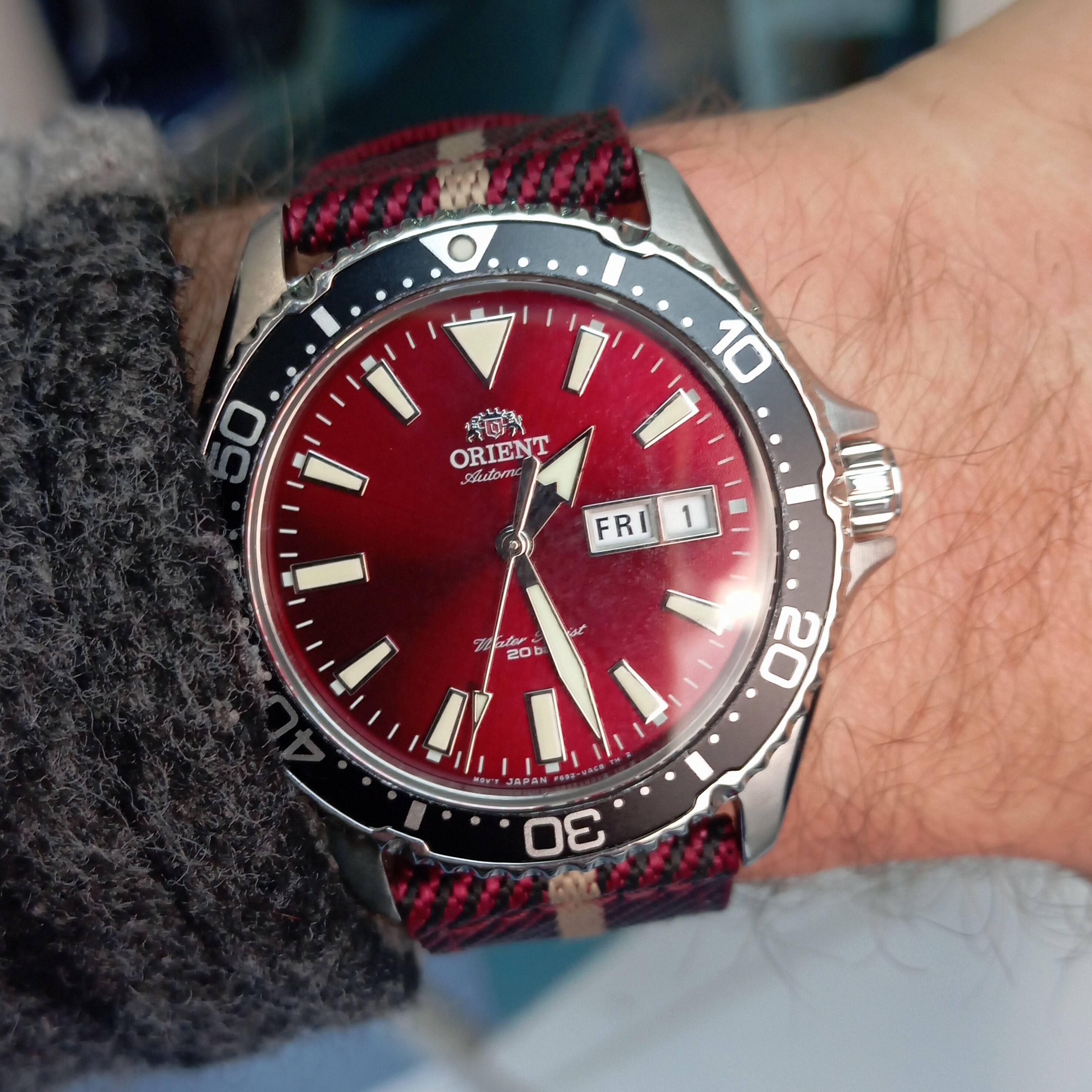 Mi hijo no se ha podido resistir y ya tiene su orient nuevo. Aquí una foto de los dos en la comida de año nuevo.