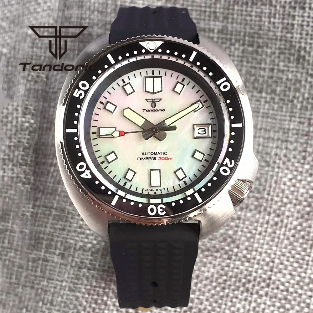 € 101,87 30% dto. | Tandorio-Reloj de pulsera automático para hombre, accesorio de pulsera de buceo con esfera de concha blanca, NH35A, 44mm, resistente al agua 200M, cristal de zafiro, inserción de cerámica, fecha automática