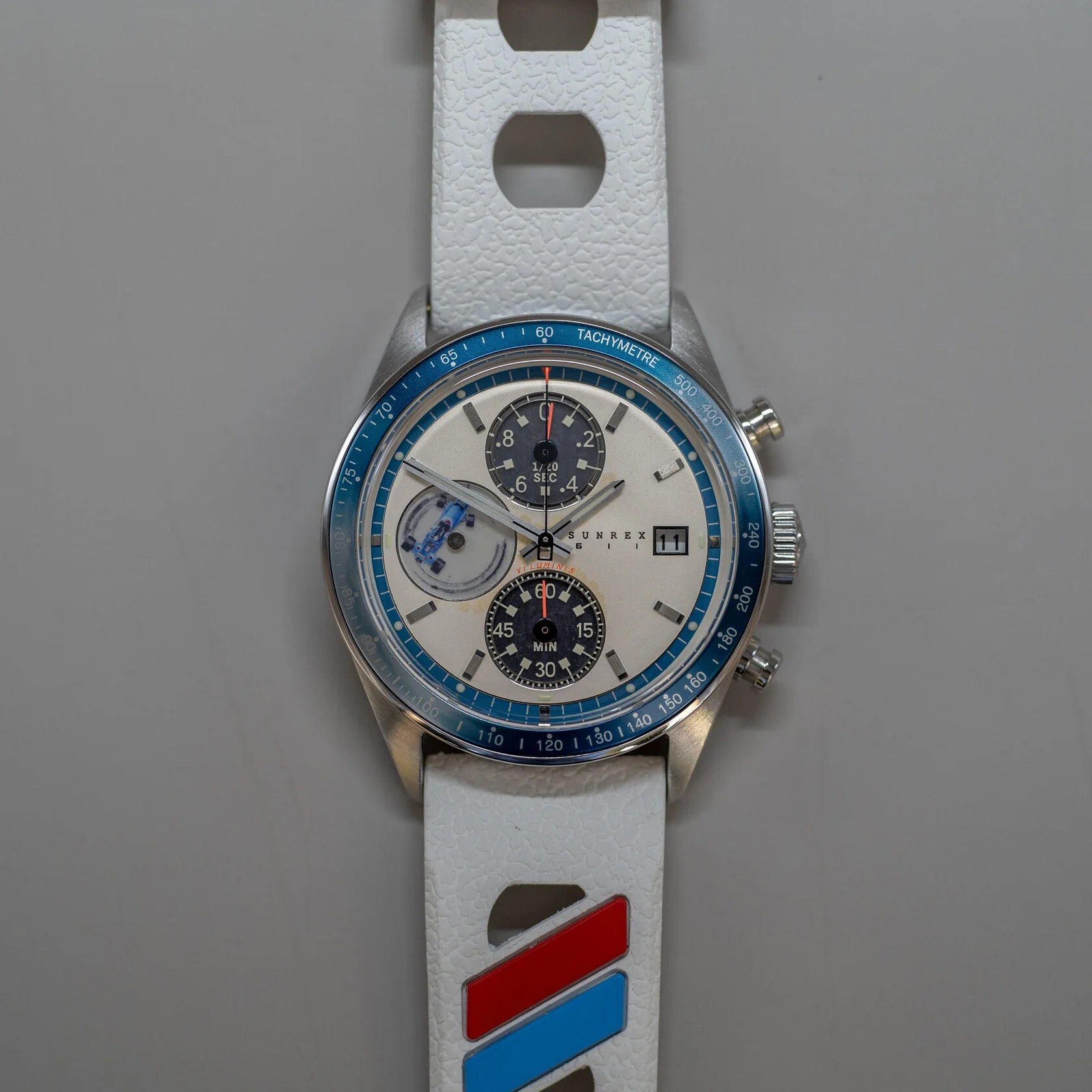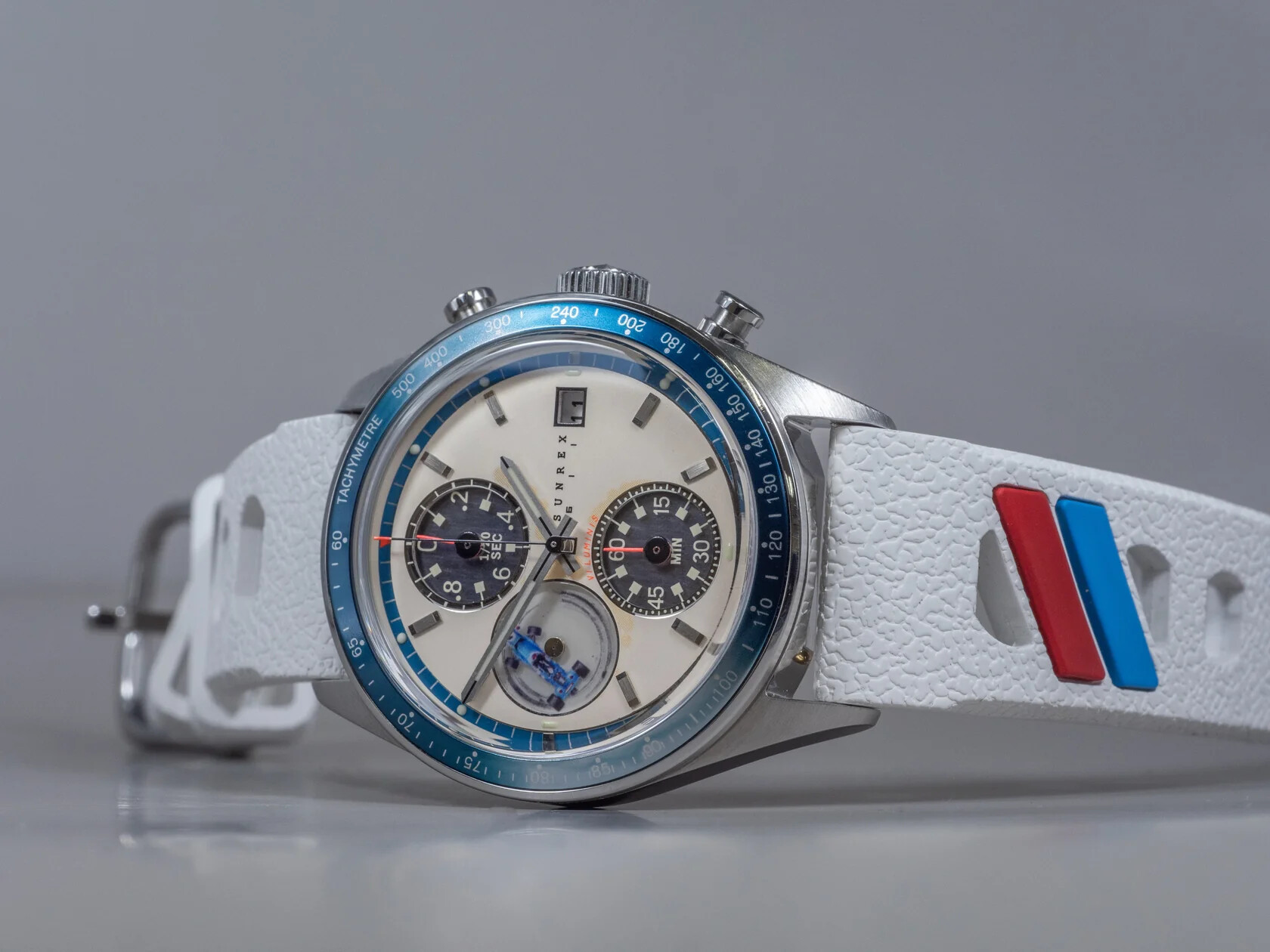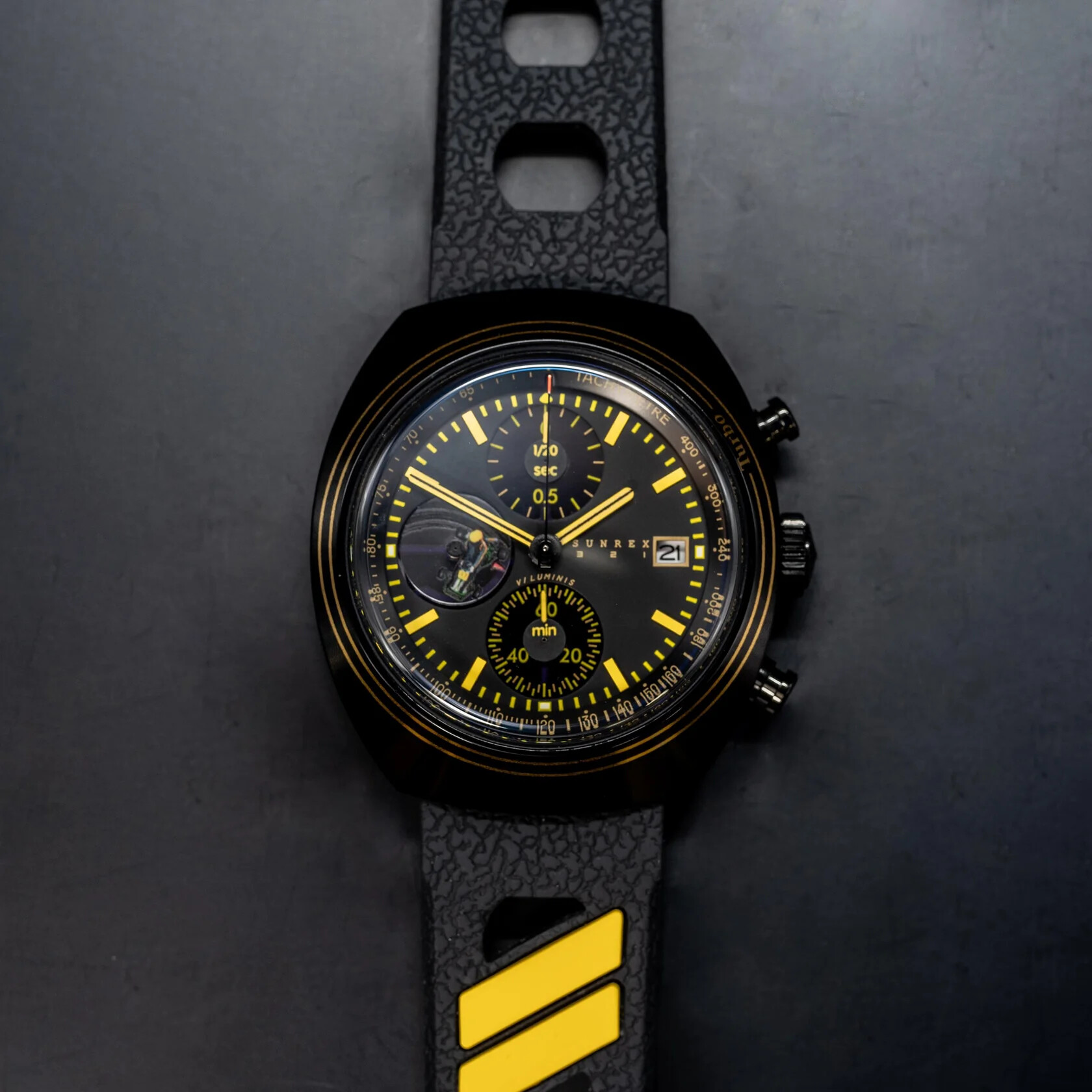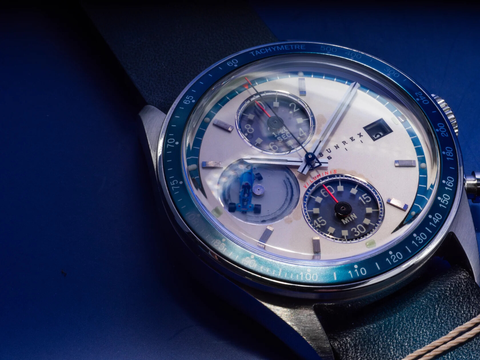 Un par de cronógrafos solares de inspiración automovilística, homenajeando sin expresarlo explícitamente en la pieza.