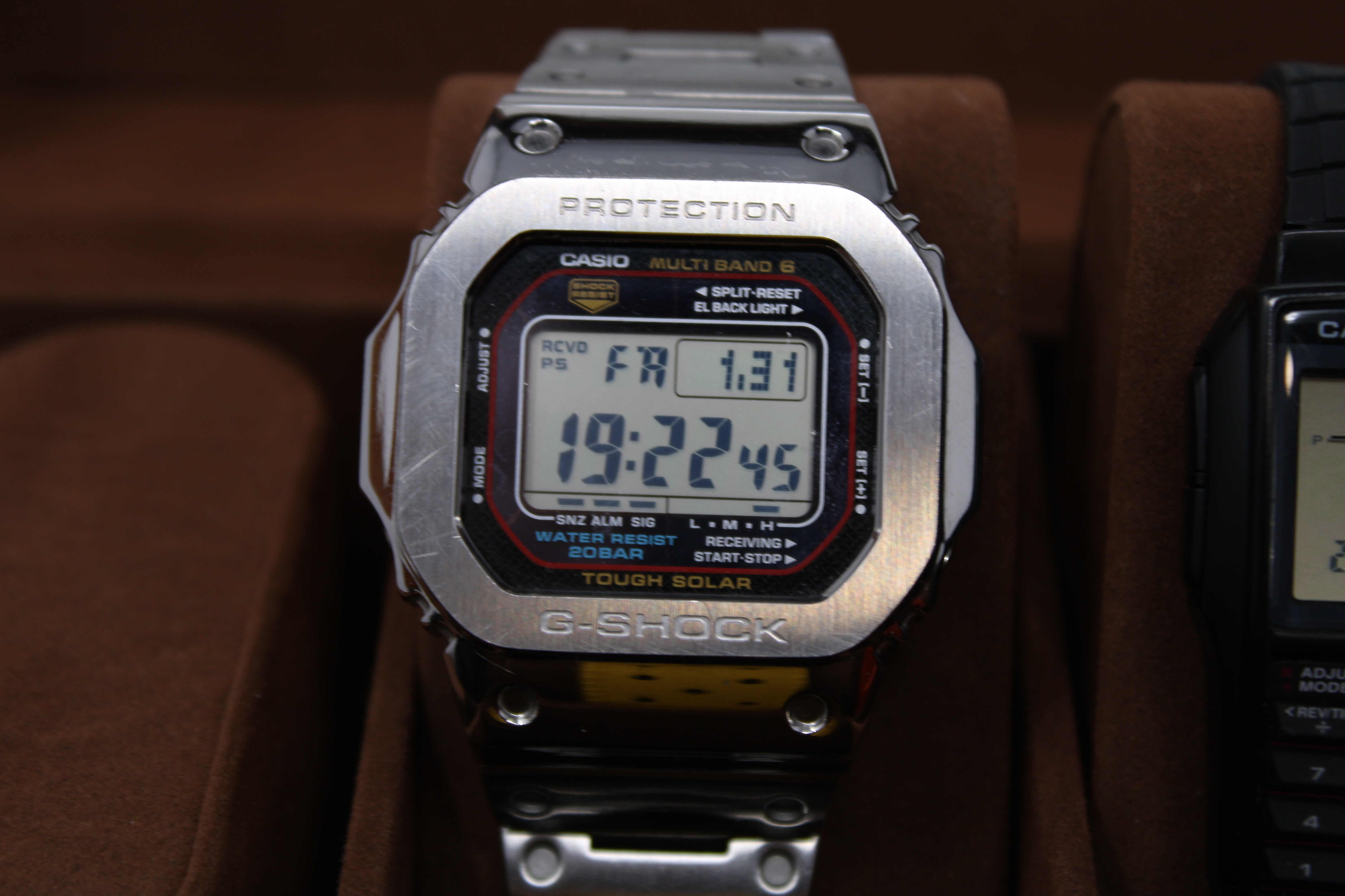 La devolví y me puse a buscar algo más ponible. Gracias a un compi del foro, que fue muy majo, encontré su G-Shock 5600 (versión electroluminiscente) con armis y bisel en acero, y me lancé a por él.