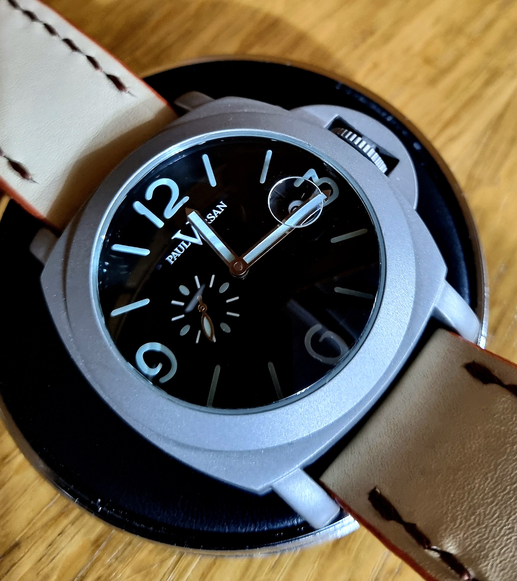 El primero que compré fue la “tanqueta” de Amazon. Cuando me llegó… vaya medidas. Con mi muñeca, tenía la sensación de que era el reloj quien me llevaba a mí.