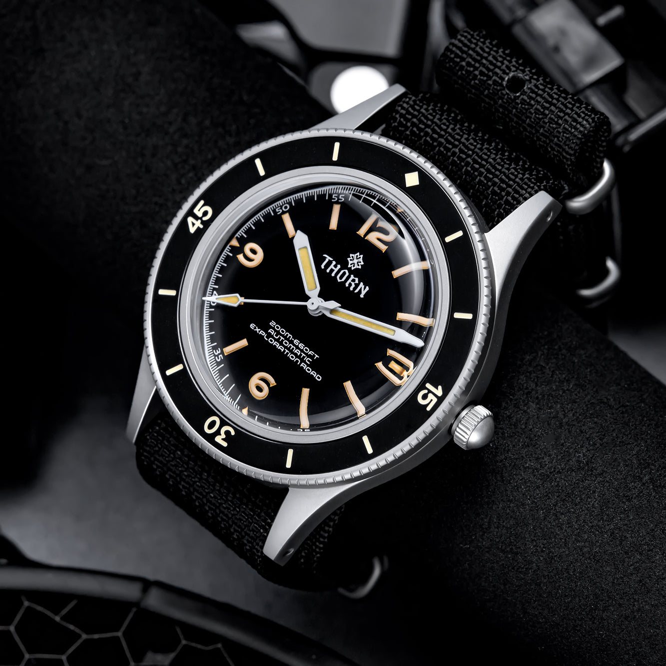 B) Por poner uno, caja en acero, zafiro y calibre NH.