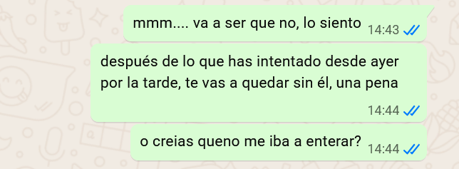 Total, que llega la hora de quedar con él para venderle el reloj, y me escribe. Como es lógico, le digo que no voy a ir, claro: