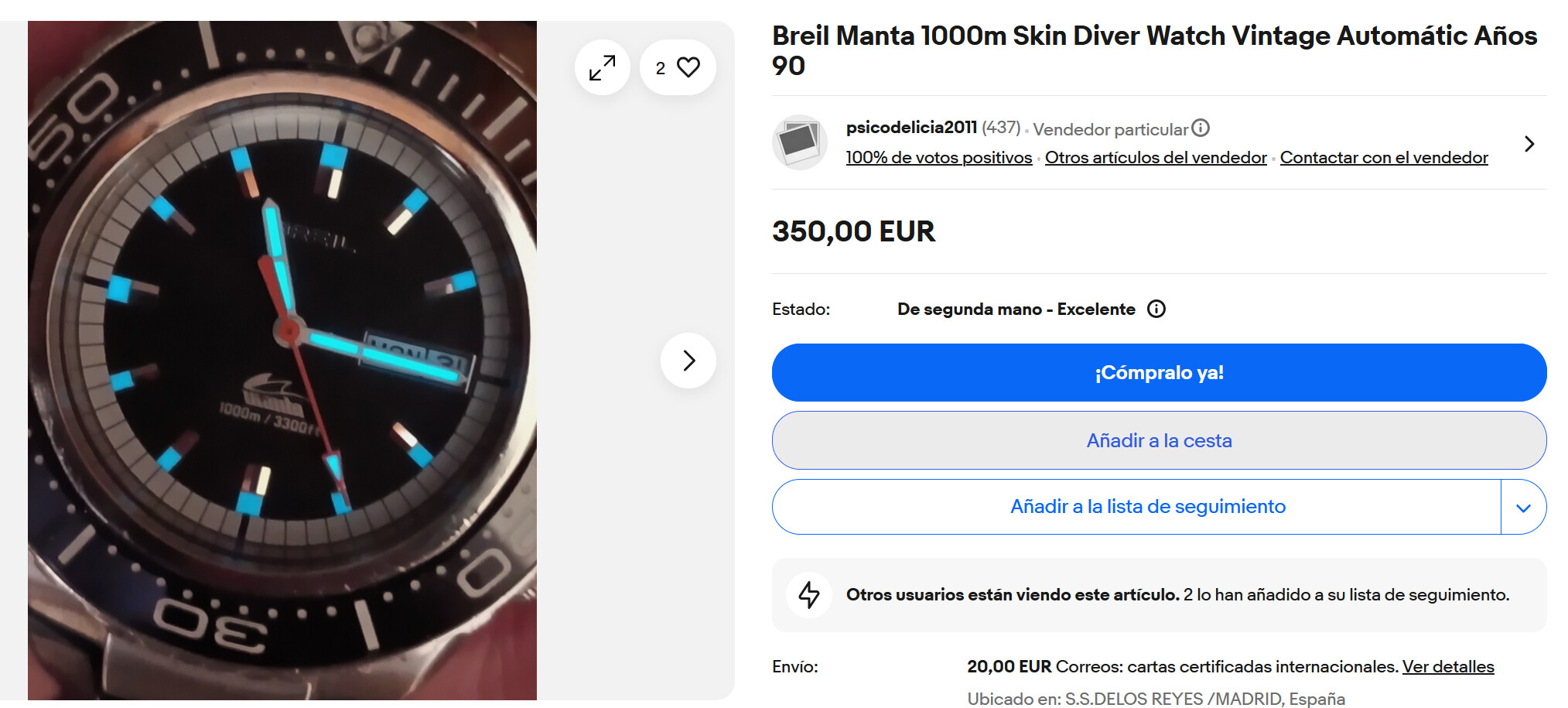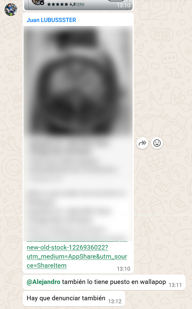 Afortunadamente, Chrono24 me ha hecho caso, y antes de las 10h ya había eliminado el anuncio. Algo más tarde, ha desaparecido el de Wallapop (pero no por la plataforma, claro, que como siempre se la ha sudado