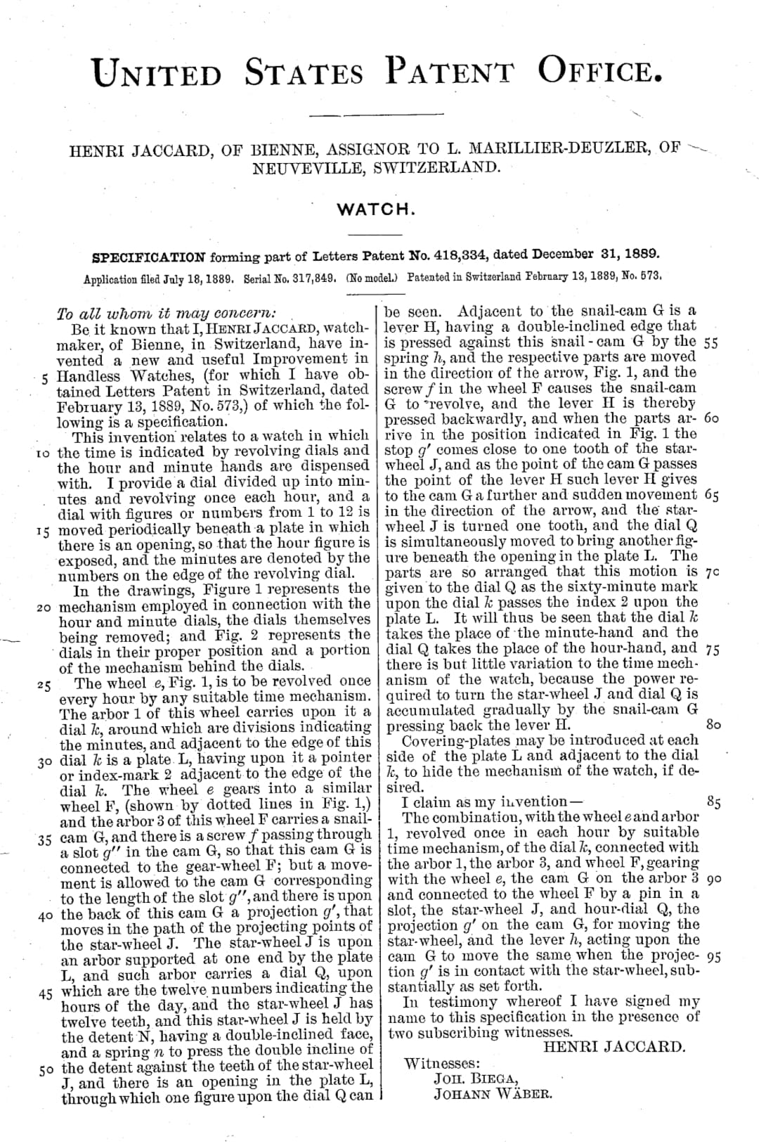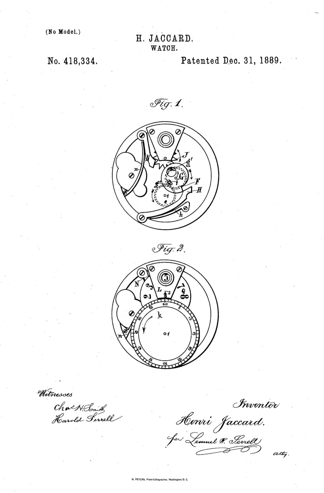 Patent by Henri Jaccard from 1889. There is a Swiss (Feb. 1889), German (June 1889) and US patent (Dec. 1889) for this complication. Henri Jaccard went to the US to sign the patent himself.