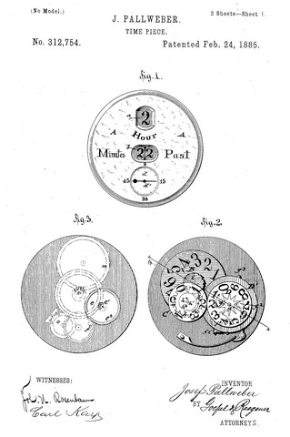 La patente es muy parecida a la del IWC Pallweber, aparecida un año antes. El cambio más significativo en el de la ventanita de los minutos.