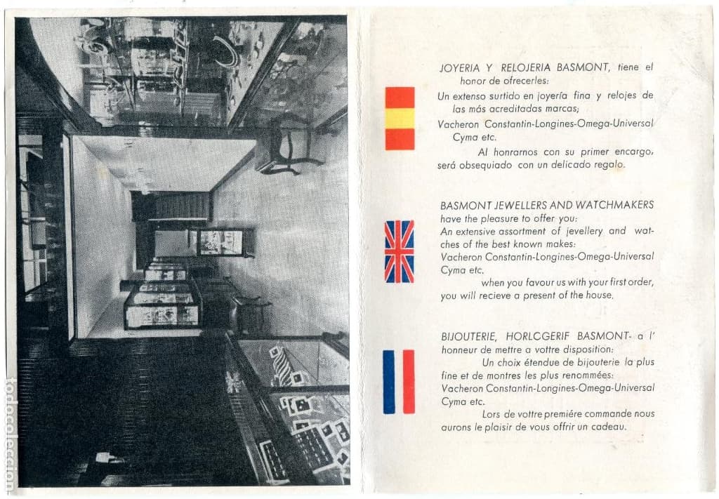 Y aquí el prospecto (en tres idiomas), donde se nos señala que cuentan con las “más acreditadas marcas: Vacheron Constantin, Longines, Omega, Universal, Cyma, etc.”