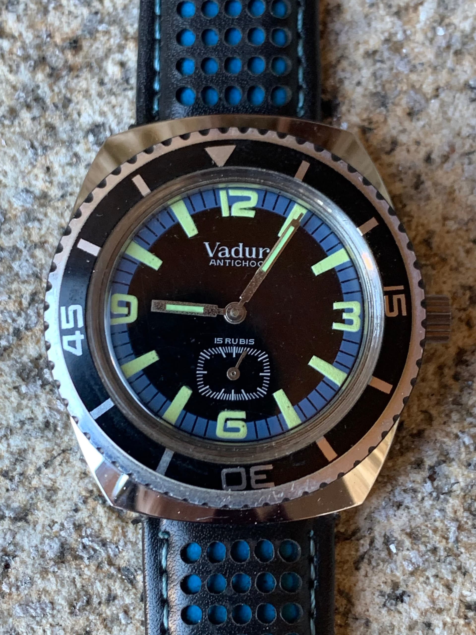 Efectivamente, se trata de una de esas marcas de fantasía que solían crear distribuidores o relojeros para comercializarlas a través de su negocio. Lo primero que suele aparecer cuando se busca algo de información sobre Vadur es esa escueta y nada clarificadora referencia a Tajo S.A.,