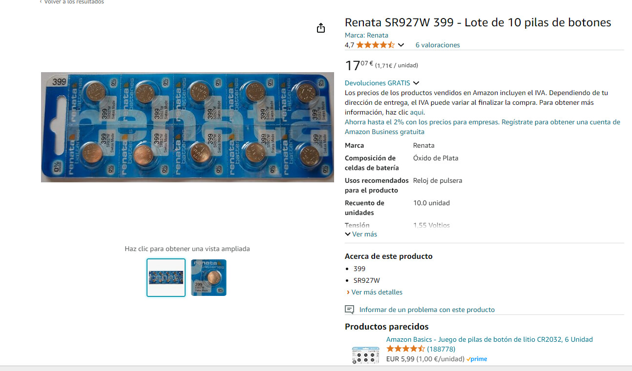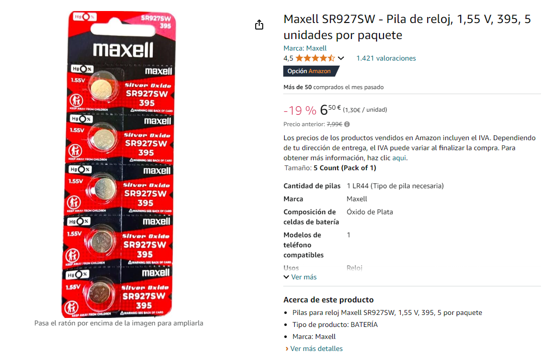 Cerciórate de que la pila sea la suya y de el voltaje adecuado (nueva 1,54-1,55)