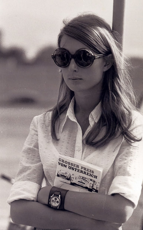 Que toman su nombre de Nina Rindt, modelo y esposa de Jochen Rindt, al que acompañaba y cronometraba en los Grandes Premios de F1, de una forma tan estilosa como se ve en las fotos. Curiosa, enorme y famosísima la correa bund con la que lo llevaba, no se sabe si para evitar alguna alergia, o porque era (de calle) la más fashion del paddock…