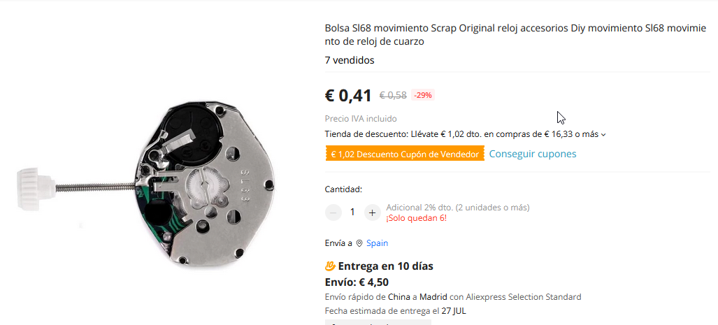 Para que te hagas una idea, buscando el movimiento… es un movimiento chino que no cuesta ni 1€, con piezas de plástico que pretende imitar probablemente a algún miyota sencillo de los que su precio tampoco es mucho mayor: