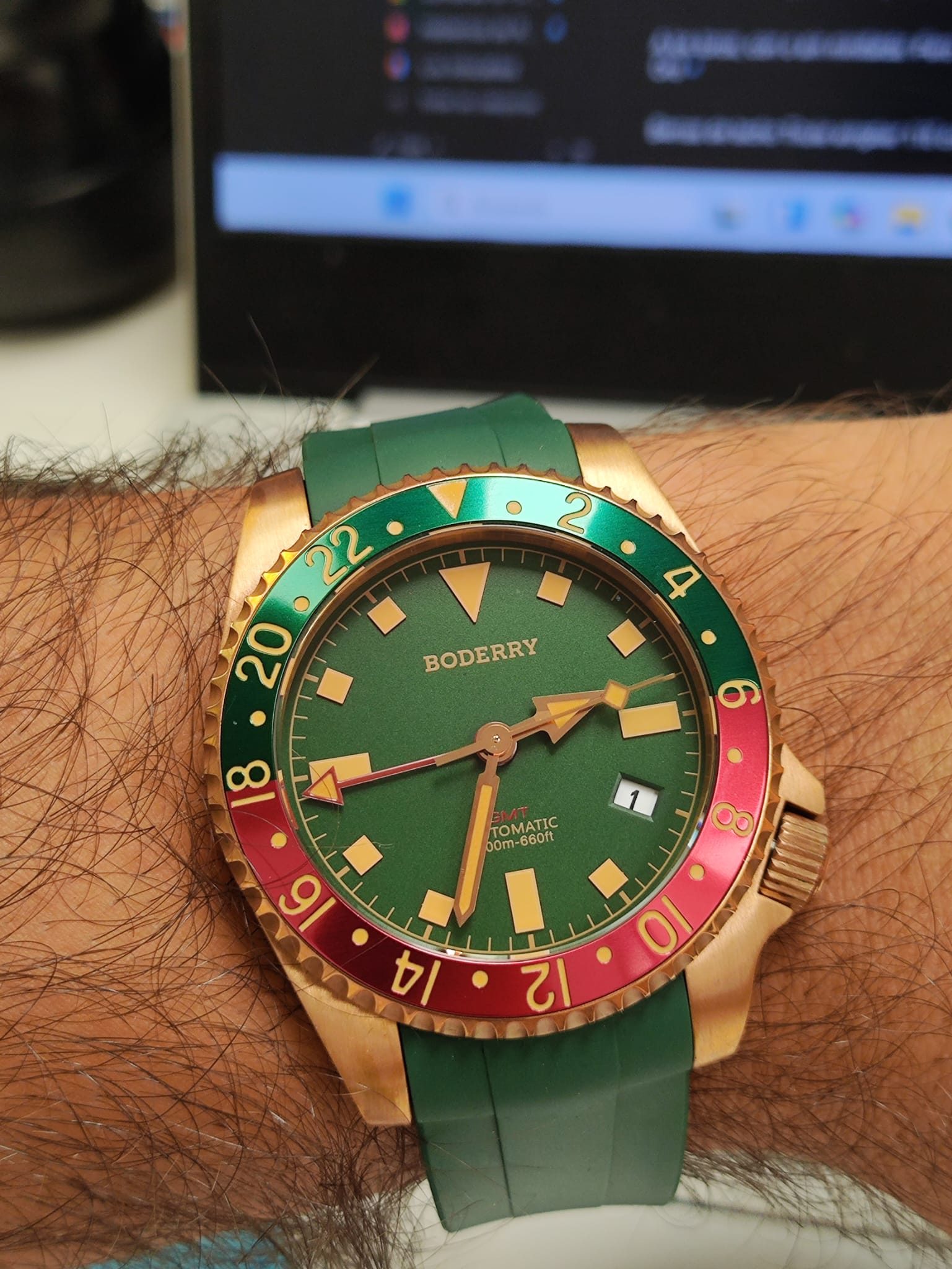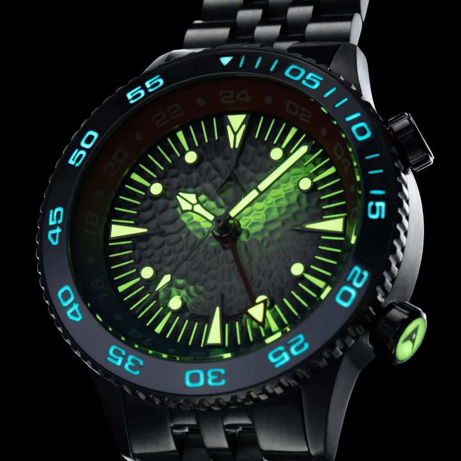 Boluva Oceanographer GMT, muy recargado, una pena a mi entender, y lúmen enorme en el dial (no he tenido uno en real así pero creo que me parecería excesivo)