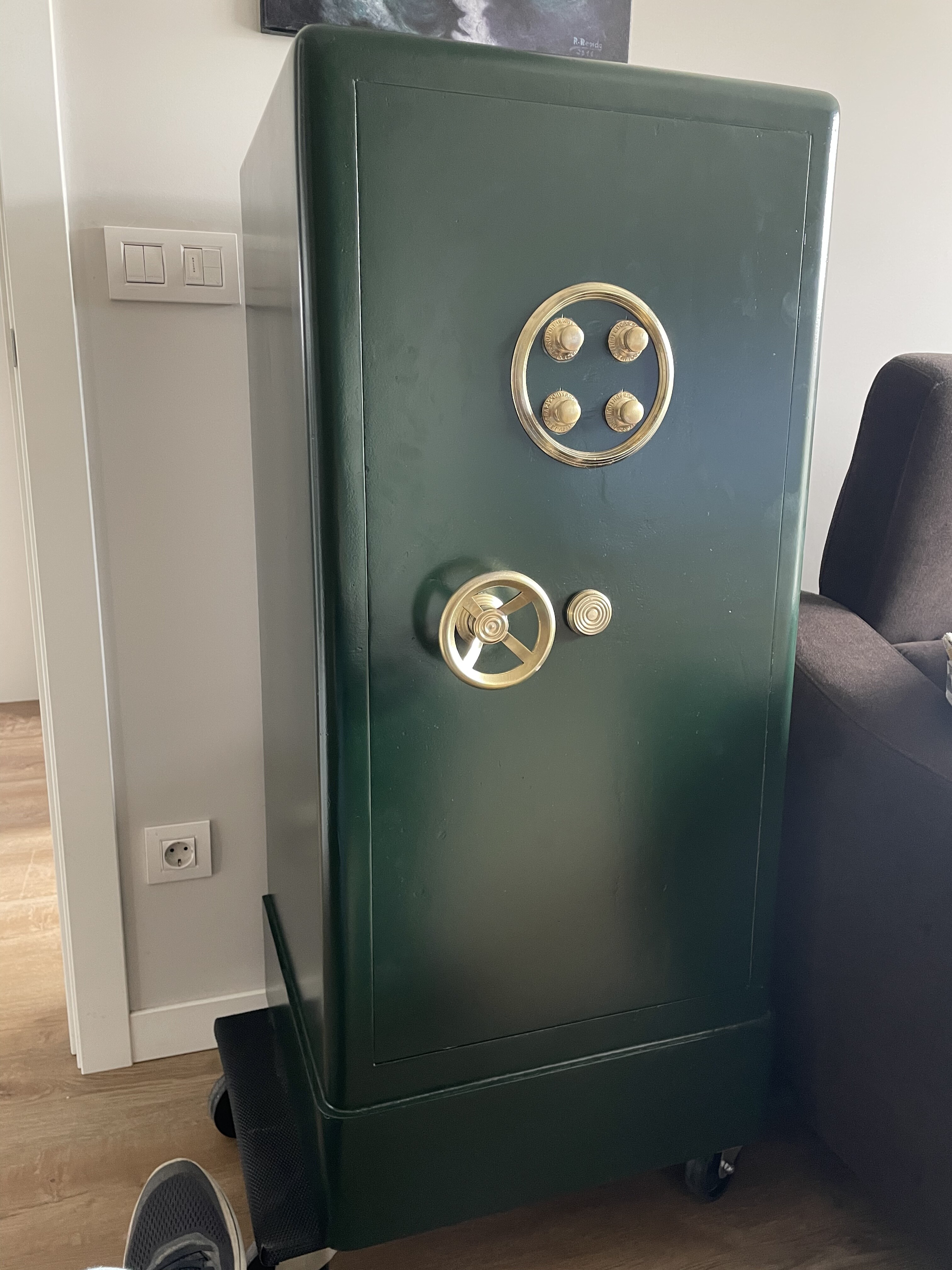 He comprado una caja fuerte antigua restaurada y totalmente funcional, con combinación alfabética y cerradura oculta para mayor seguridad, además de un cajón con llave interior.