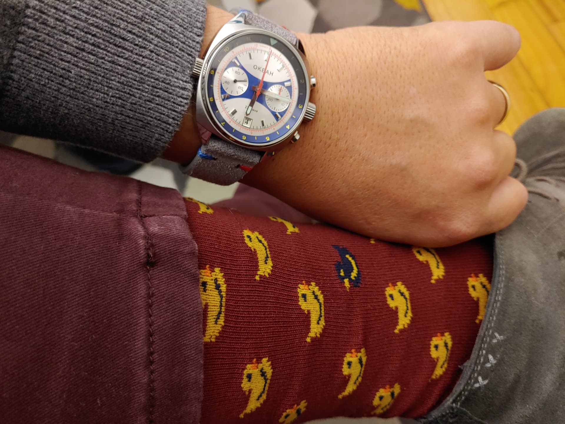 Hoy dejo el traje en casa y me calzo las zapatillas. Aunque los calcetines cantosos los llevo también con traje, un sello de identidad que no pasa desapercibido normalmente.
