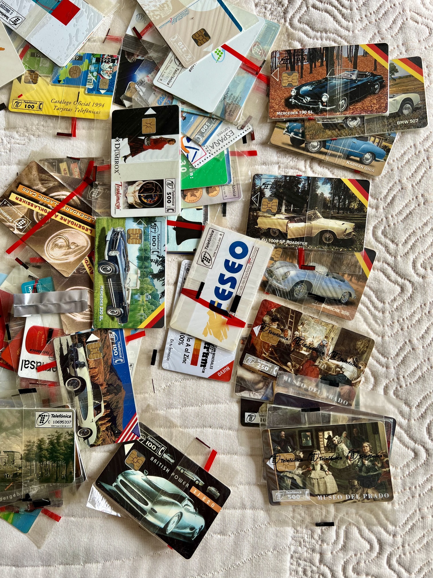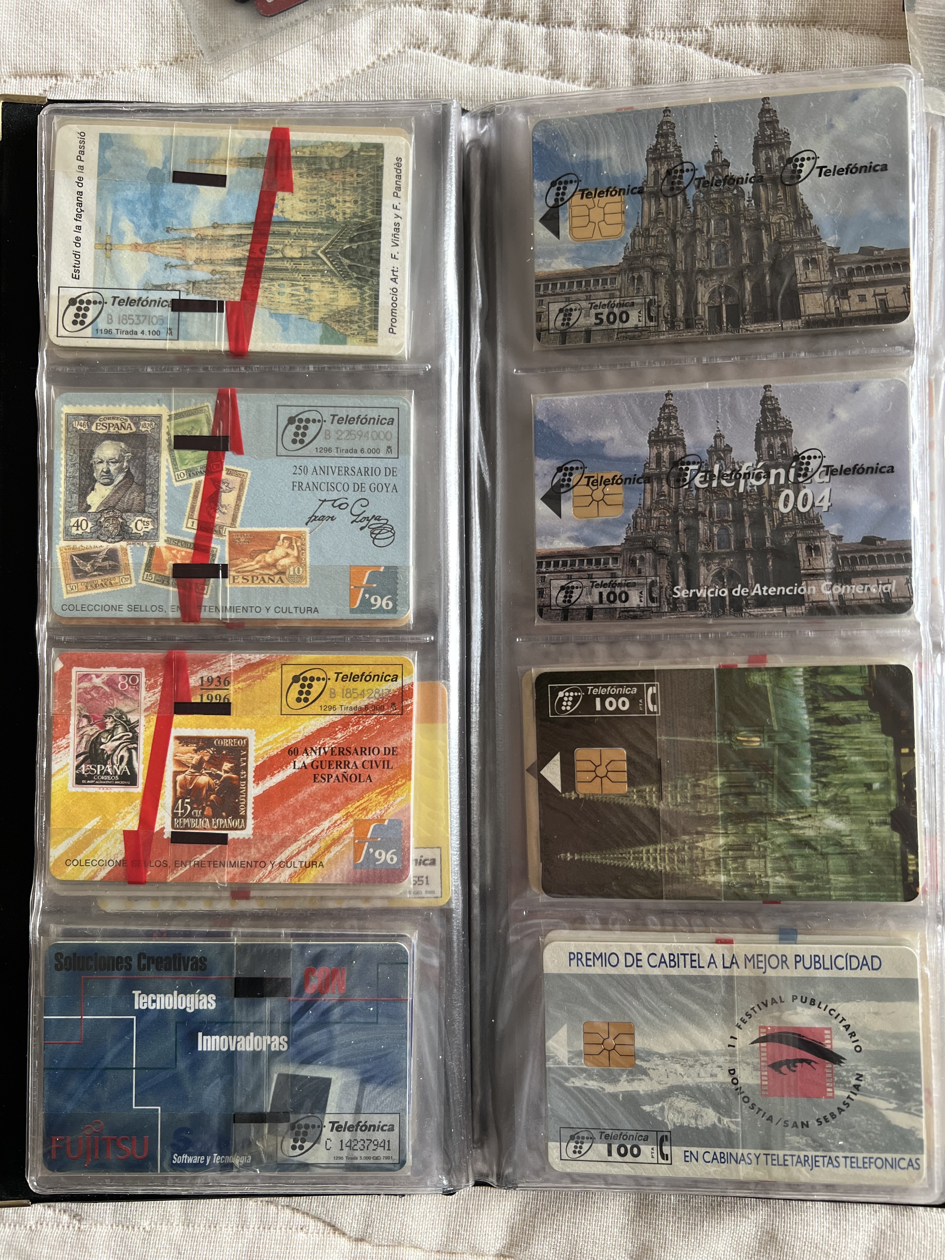 Pues eso, creo que esto no tiene mucha venta pero no tengo ni idea. Es una colección de tarjetas telefónicas de la empresa Cabitel, qué es la filial de telefónica que se encargaba de la gestión de las cabinas telefónicas, y en su momento como medio de pago estaban las tarjetas prepago. Esto es una colección de tarjetas que yo como empleado estaba suscrito y están todas en su funda sin estrenar. Si hay algún Friki de la colección de tarjetas telefónicas que le interese, lo cambio por algo que me puede interesar. No tengo ni idea del valor con lo que le pongo yo que sé 100 € por ejemplo pero vamos que todo es negociable y las tengo en un cajón dándome por culo y las quiero quitar ya y además quiero borrar el recuerdo de mi primera empresa que aunque estuve muy bien me tuve que salir por estrés laboral de aburrimiento porque mi jefe era el típico con carnet socialista que no tenía ni puta idea, y cuando a ti se te ocurría algo que podía mejorar el proceso o servía para algo, él se rascaba la cabeza y te decía, “déjate de hostias”, previamente te hacía la pregunta de quién te ha pedido eso …