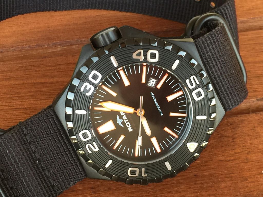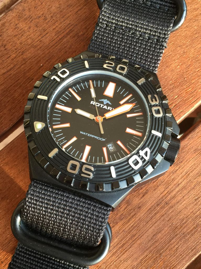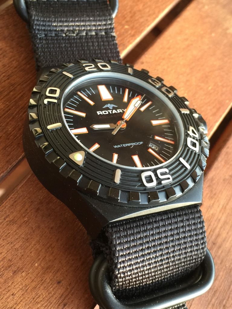 propongo para cambio una pieza difícil de ver; se trata de un ROTARY AQUASPEED en negro mate, un DIVER CONTUNDENTE Y EN ESTADO IMPECABLE. Como esta pieza se pasa los días en el cajón he decidido realizar algún cambio proporcional. Para quien no conozca la marca, Rotary es de origen suizo y establecida en Londres ( antes que lo hiciera Rolex ) desde hace muuucho. Fabrican unas piezas de una calidad MUY BUENA, tienen su propio sistema de homologación para los Divers ( el Dolphin Estándar by Rotary…que superaría a una ISO 2281, y que se realizan exhaustivamente ). Os voy a detallar las características del bicho.