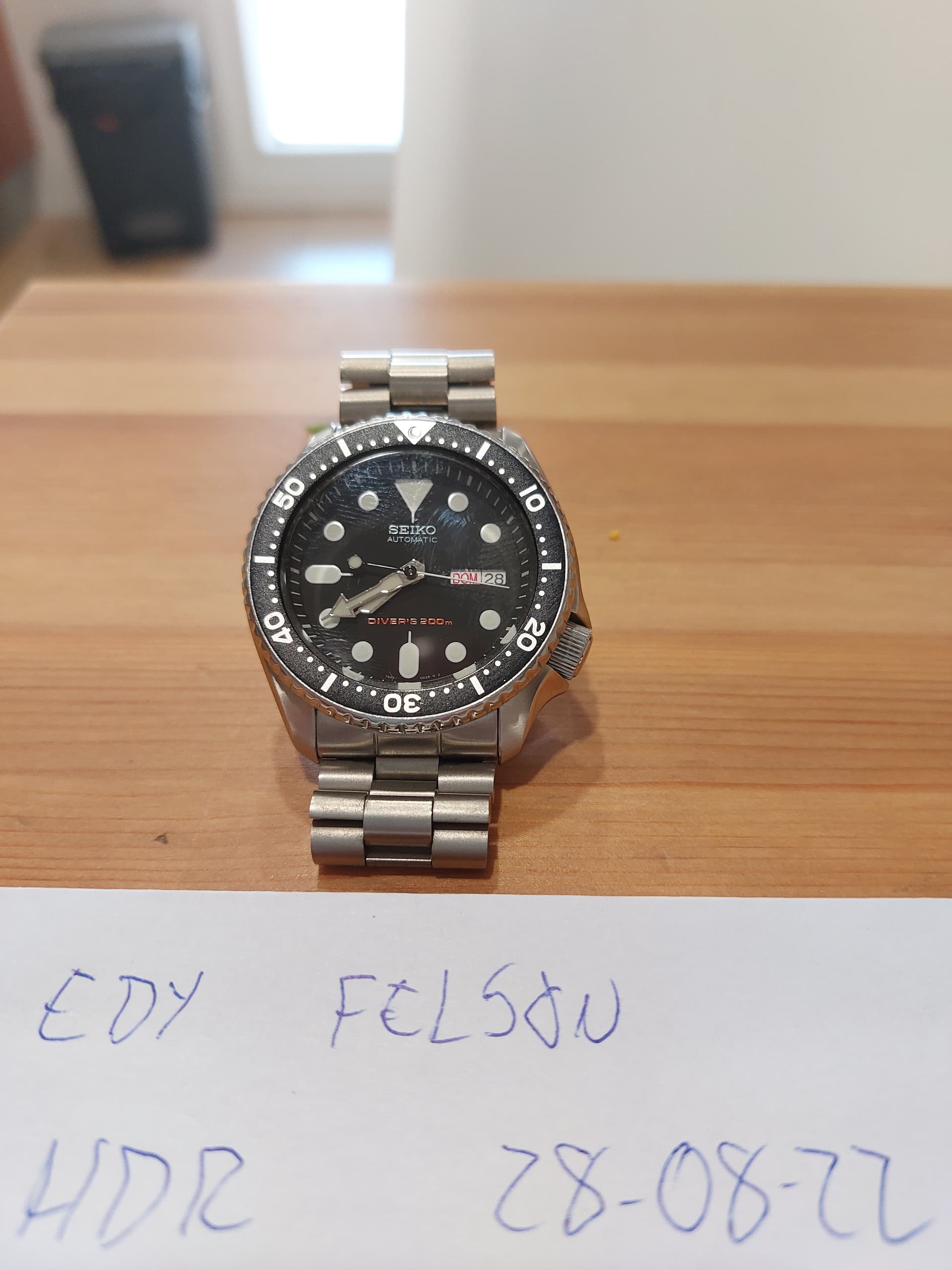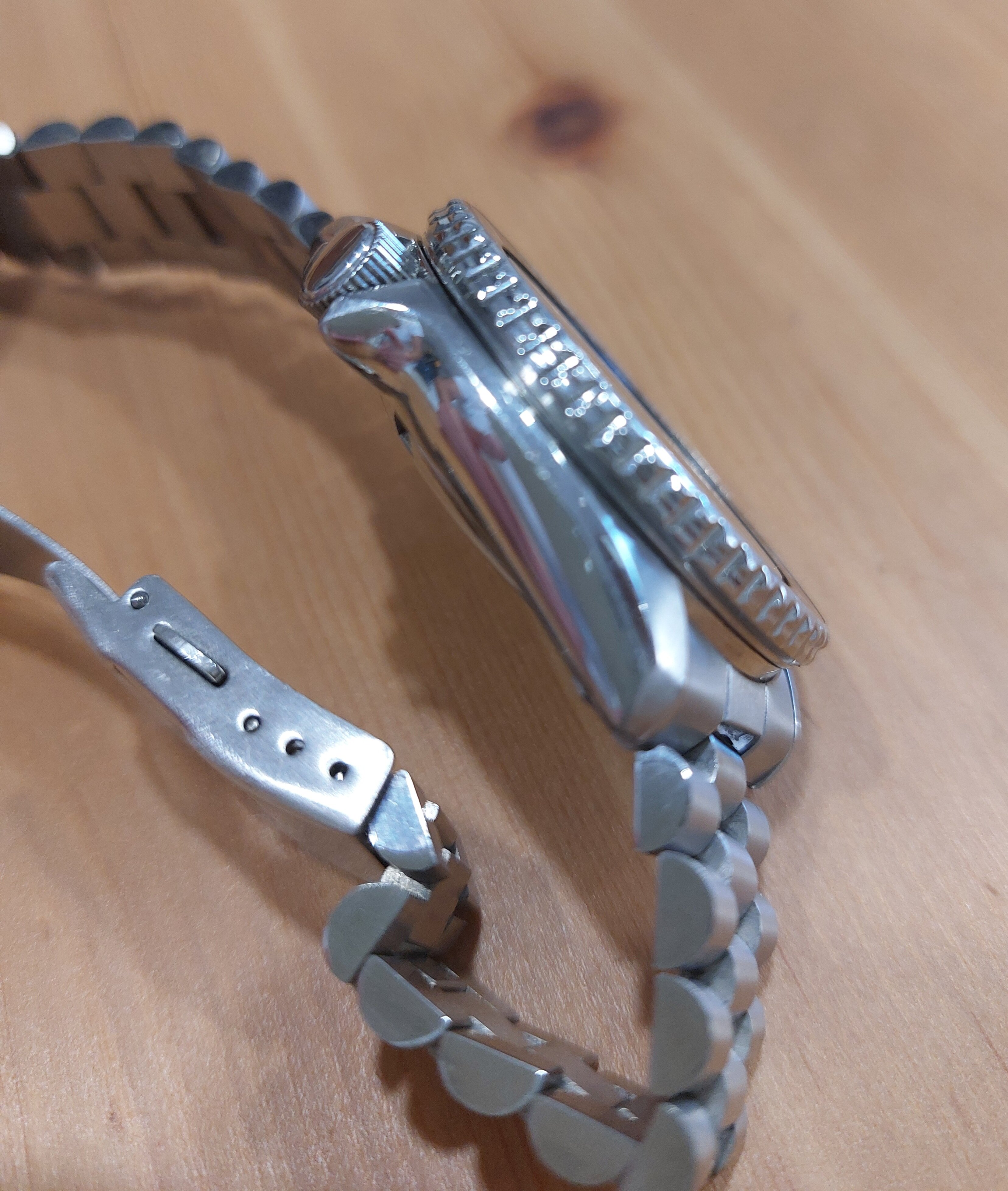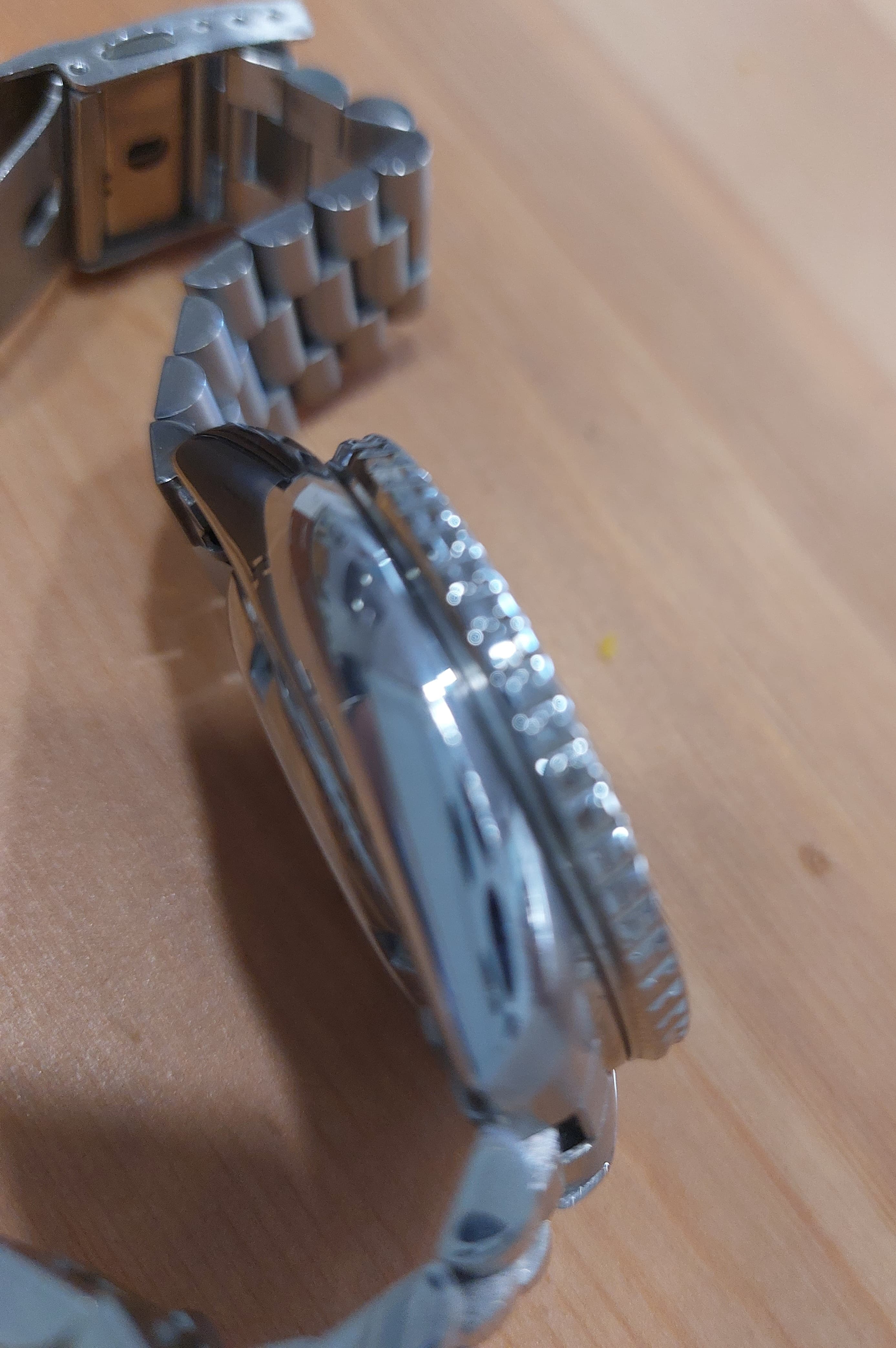 El reloj está en muy buen estado. Tiene una marquita en el lateral opuesto a la corona que sólo se ve segun le incide la luz y que no he conseguido sacar en las fotos.