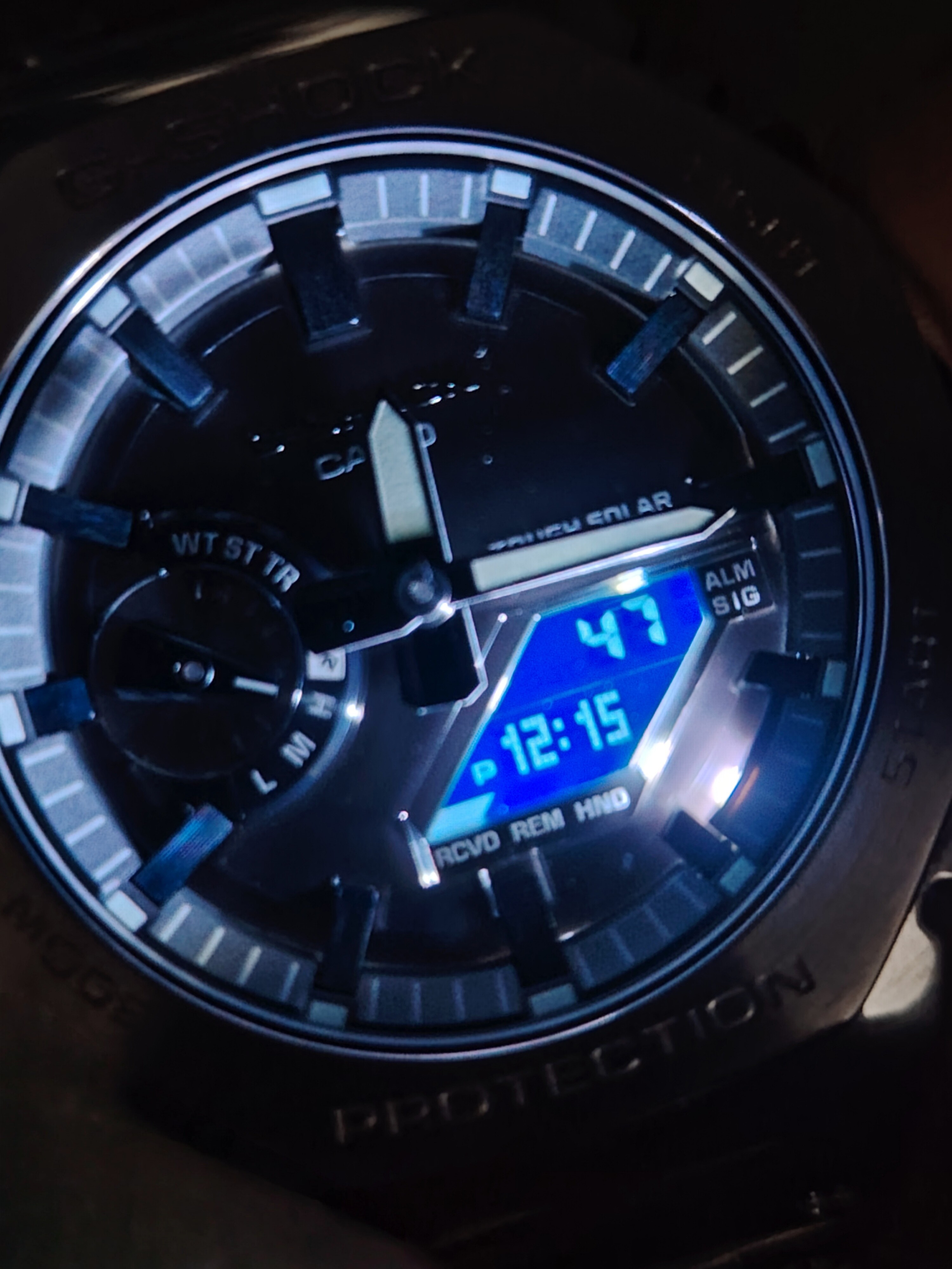 Y en cuanto a funciones, también top, a los habituales cronómetros, alarmas… a destacar, versión analógica + digital con función de apartar momentáneamente las agujas para no estorbar en la pantalla, es solar, Bluetooth con su app para sincronizar la hora con el reloj atómico y configurar lo que se desee, indicador de batería tanto en la esfera como en la app, lumen, luz led…