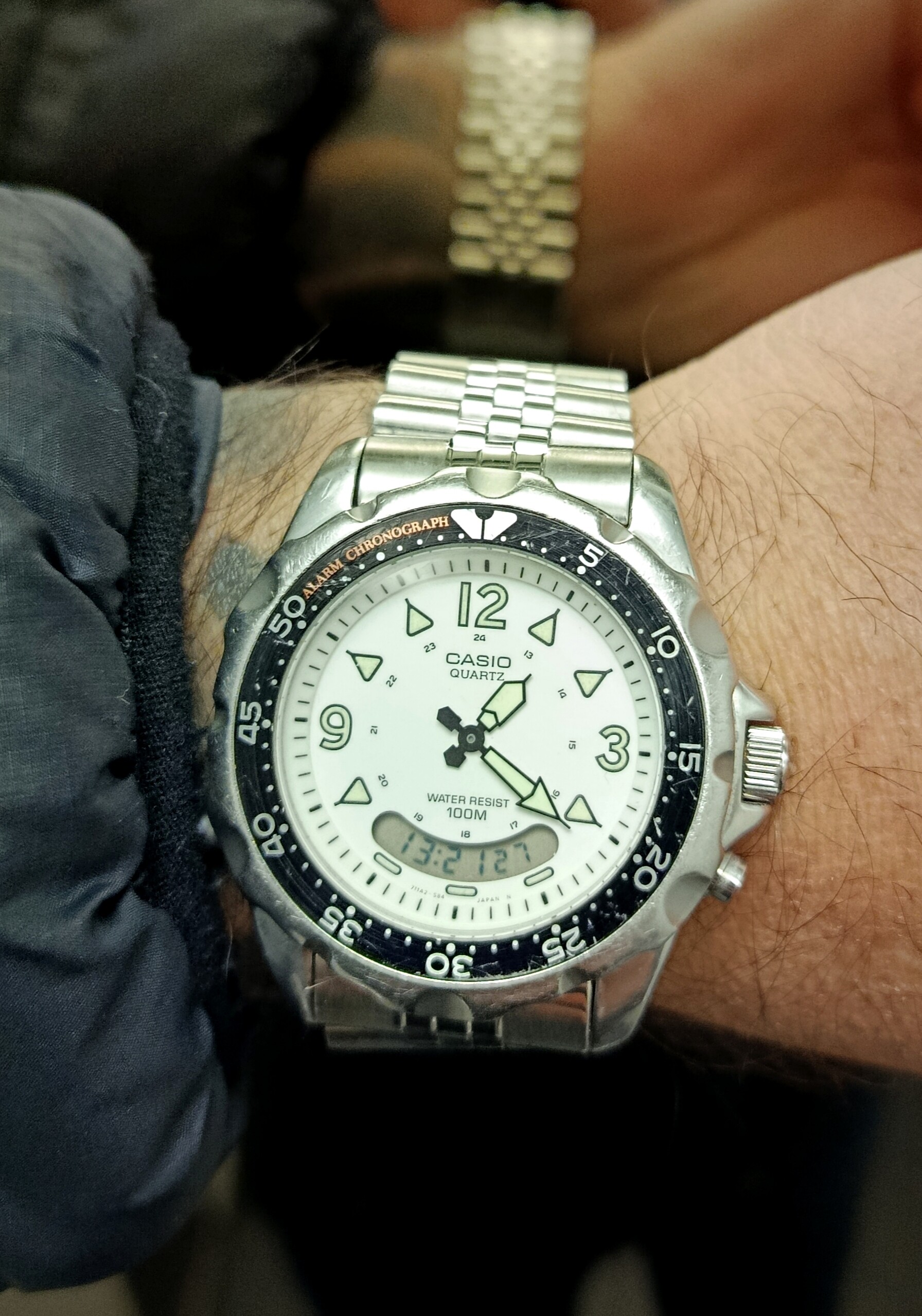 Hola a todos!. Tengo bastante relojes, pero ninguno digiral, y mirando este post de Casio, he recordado con nostalgia un Casio que tuve en mi juventud, creo recordar era el F-91 o uno muy similar, así que acabo de comprar por 48,48 € este de segunda mano en ebay. Aún no lo he recibido, pero según el vendedor está en muy buen estado. Como entre los cientos de relojes que mostrais no he visto este, quiero preguntaros si lo conoceis, y si es así, si funciona bien la brújula. Lo pregunto porque he leido en la IA que a veces falla en este modelo.