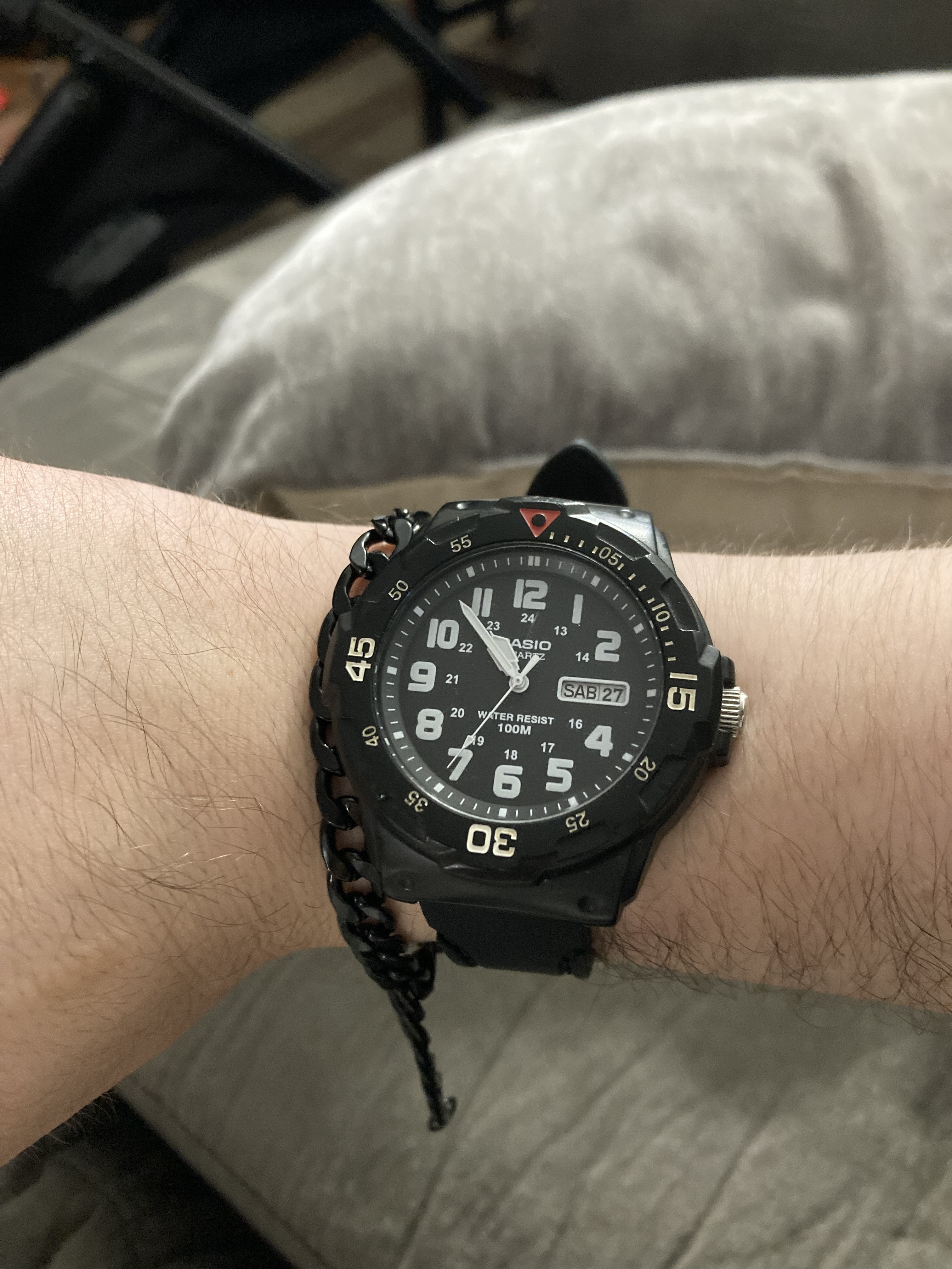 Como pero, la pila que lleva es grande y no dura más de año o año y medio, según el uso que le des a la retro - iluminación. Vamos, que es un reloj que consume cierta energía, pero creo que es un acierto en cuanto a diseño y funcionalidad.