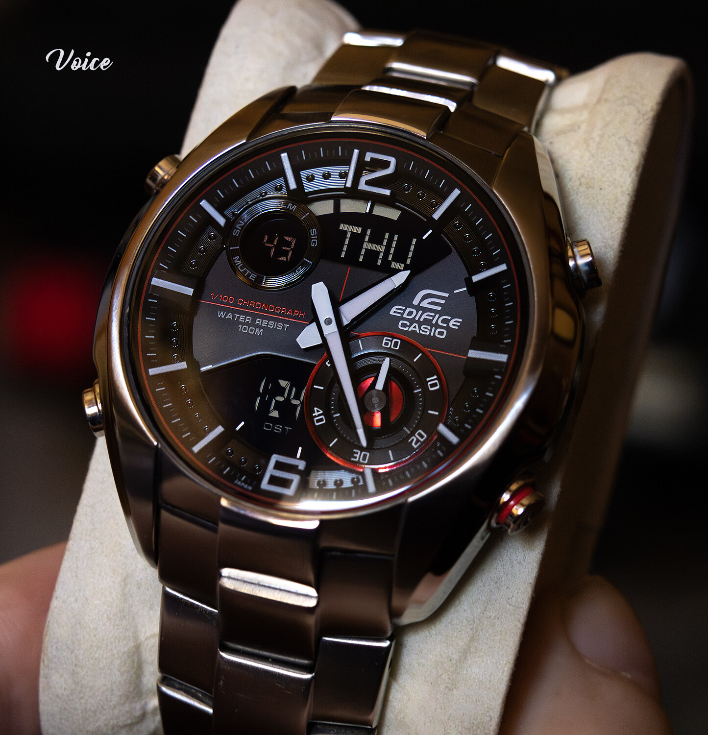 Hoy con este Edifice Racing, ERA100 que tiene unos tonos rojos espectaculares.