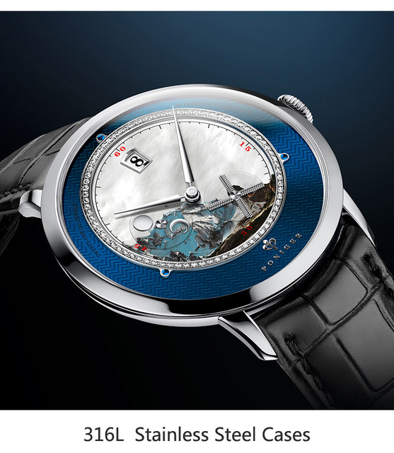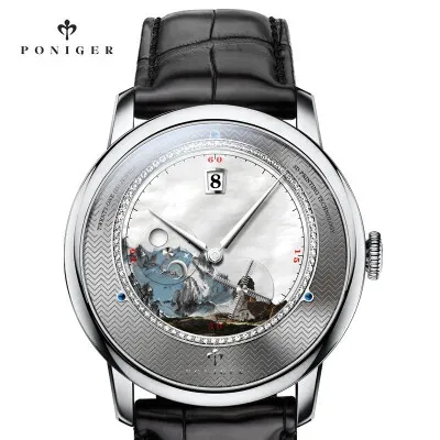 714,21€ | Reloj mecánico automático Poniger para hombre, reloj de pulsera de vestir de moda con correa de cuero resistente al agua de lujo para hombre