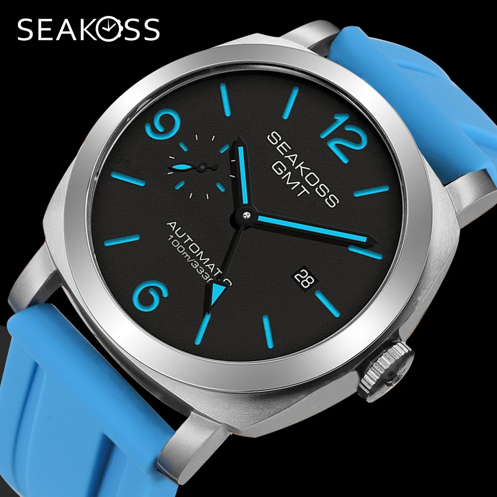 207,47€ | SEAKOSS GMT reloj mecánico automático de buceo superluminoso para hombre 10ATM 1963 Original 2557 calendario de movimiento reloj de pulsera de zafiro