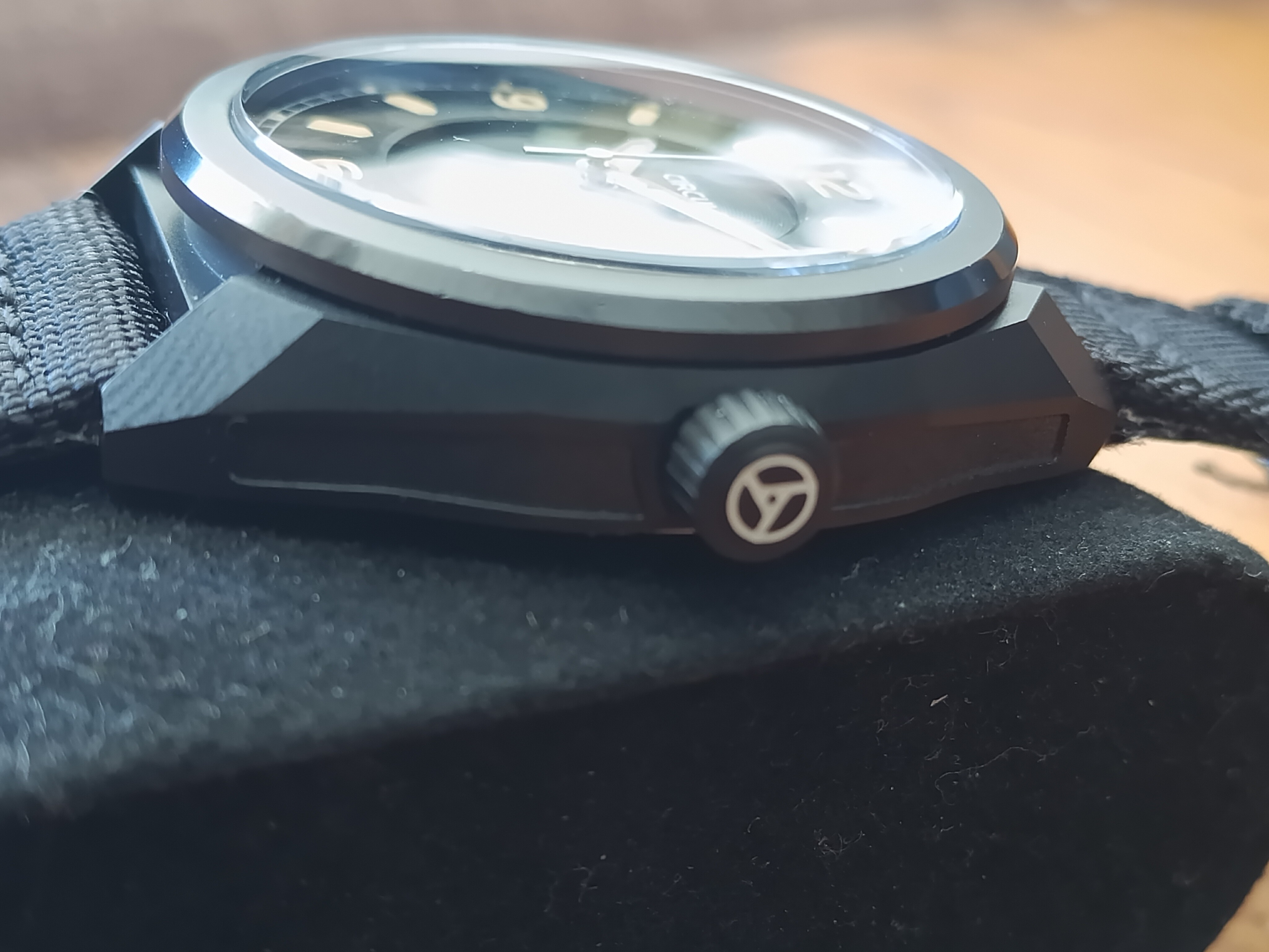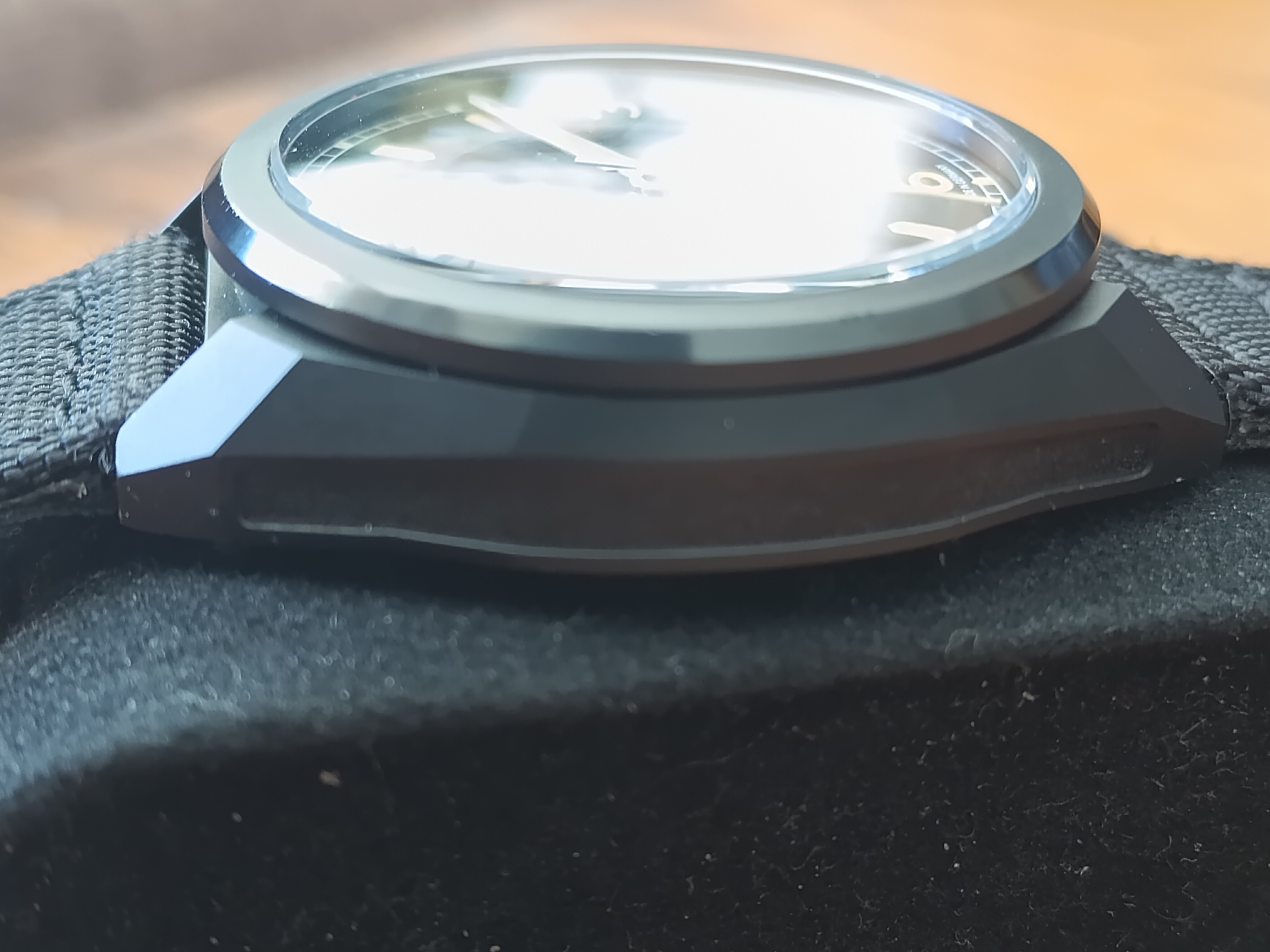 Caja arenada con tratamiento DLC negro, con una resistencia a arañazos de hasta 1.200 vickers.
