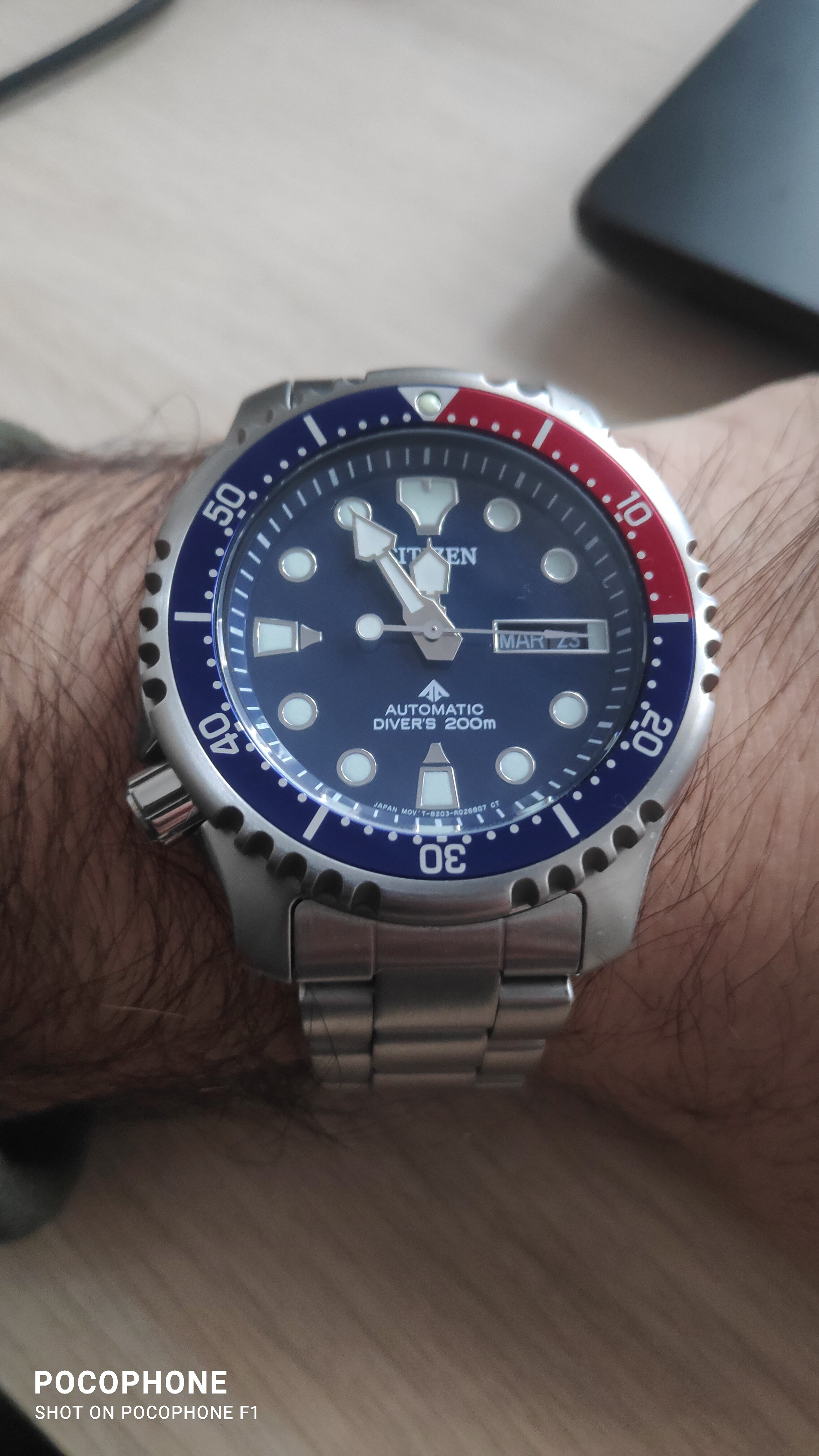 Buenas, me acaba de llegar el reloj que más he esperado conseguir.. Tiene unas cuantas heridas de guerra pero costando poco más de 200 euros.. No podría estar más contento. Un par de malas fotos. Un saludo