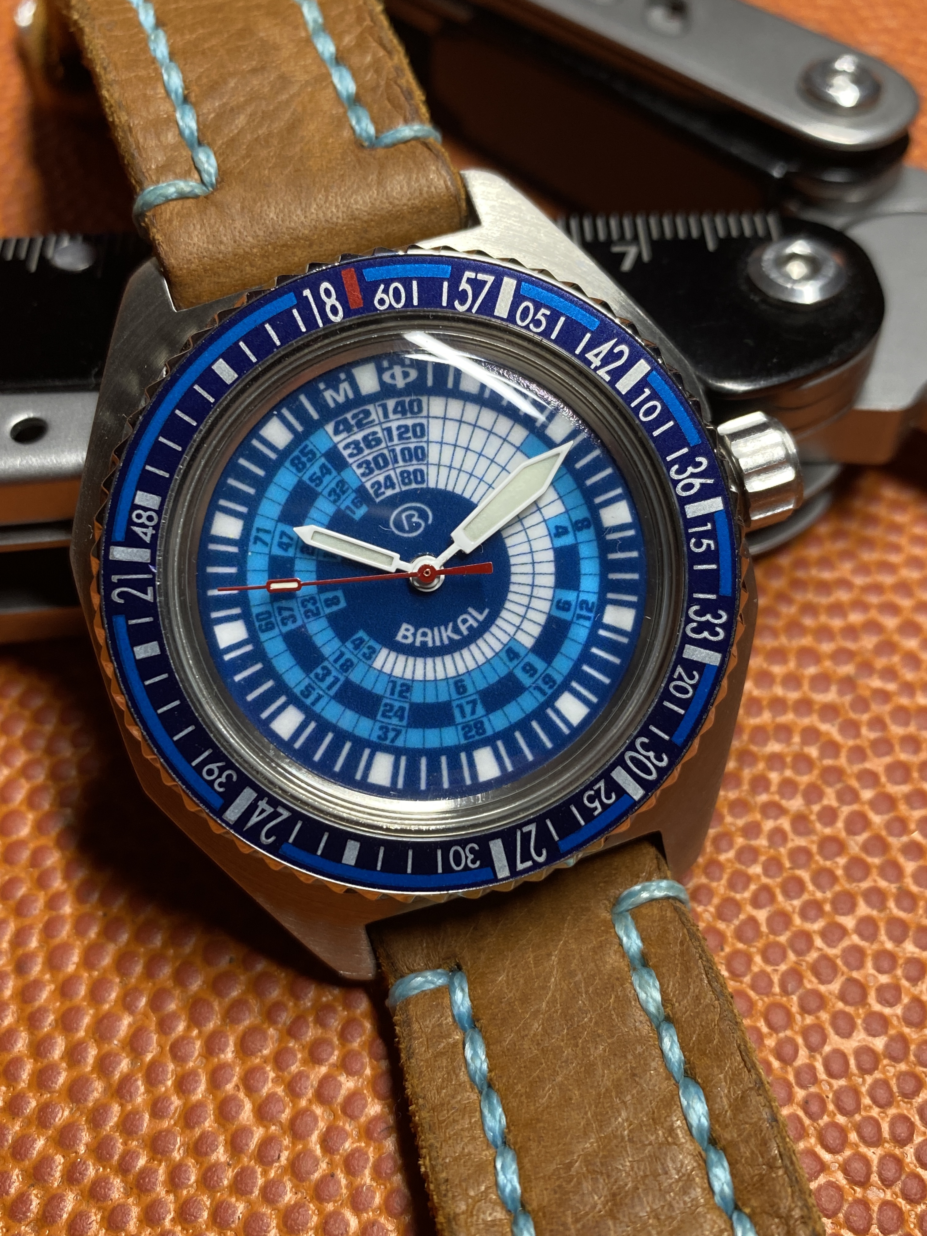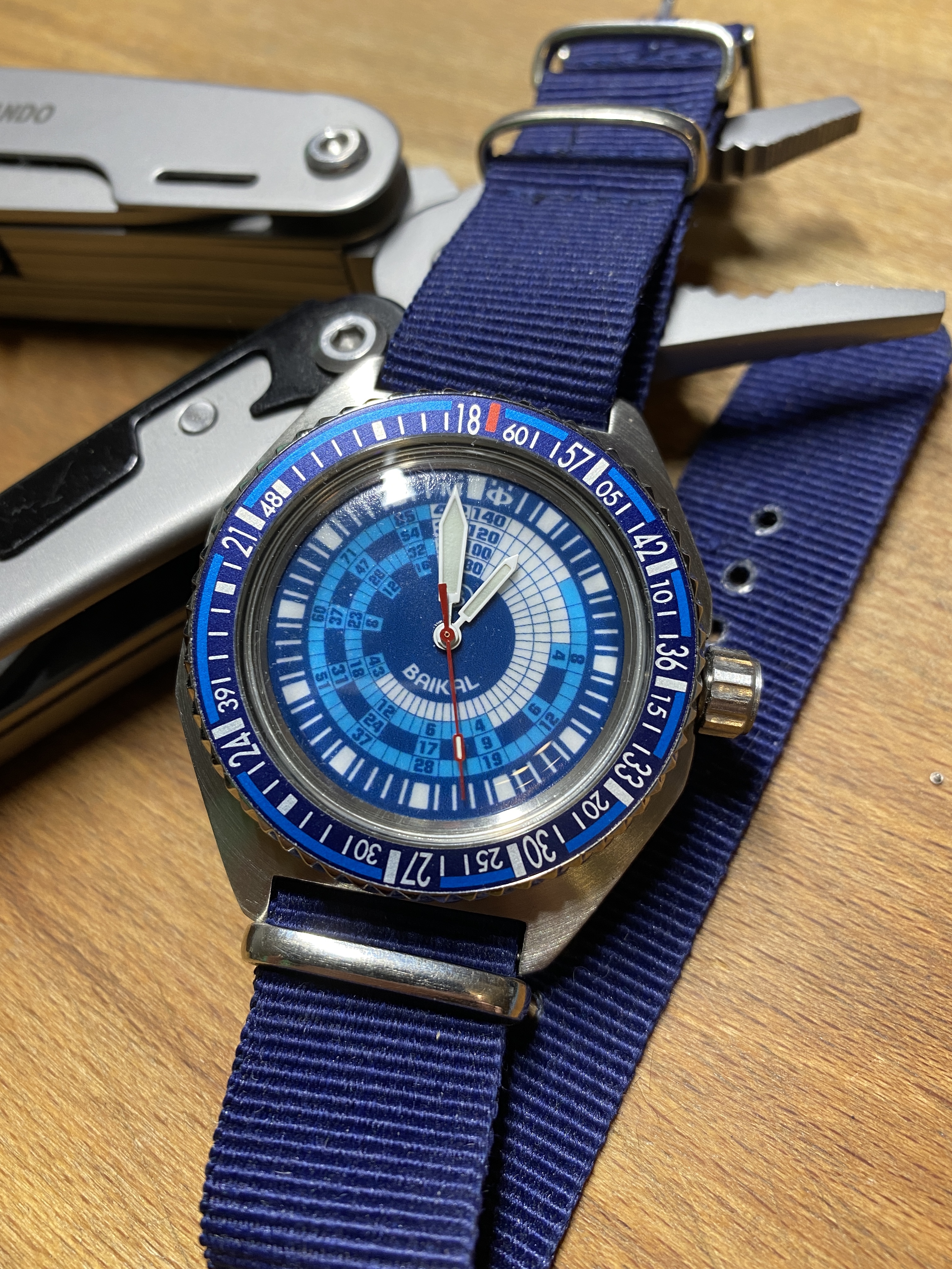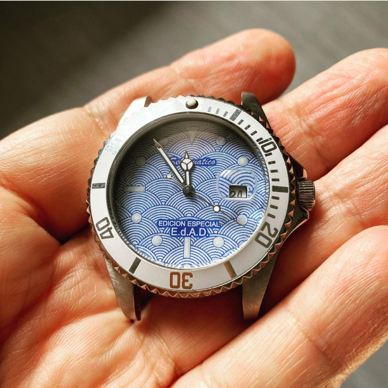Por cierto, veo este dial, entre los que has hecho. Supongo que es el Baikal de RE (tiene la misma caja, y mantiene el bisel de NO DECO azul), al que le has cambiado el dial. También has cambiado las agujas.