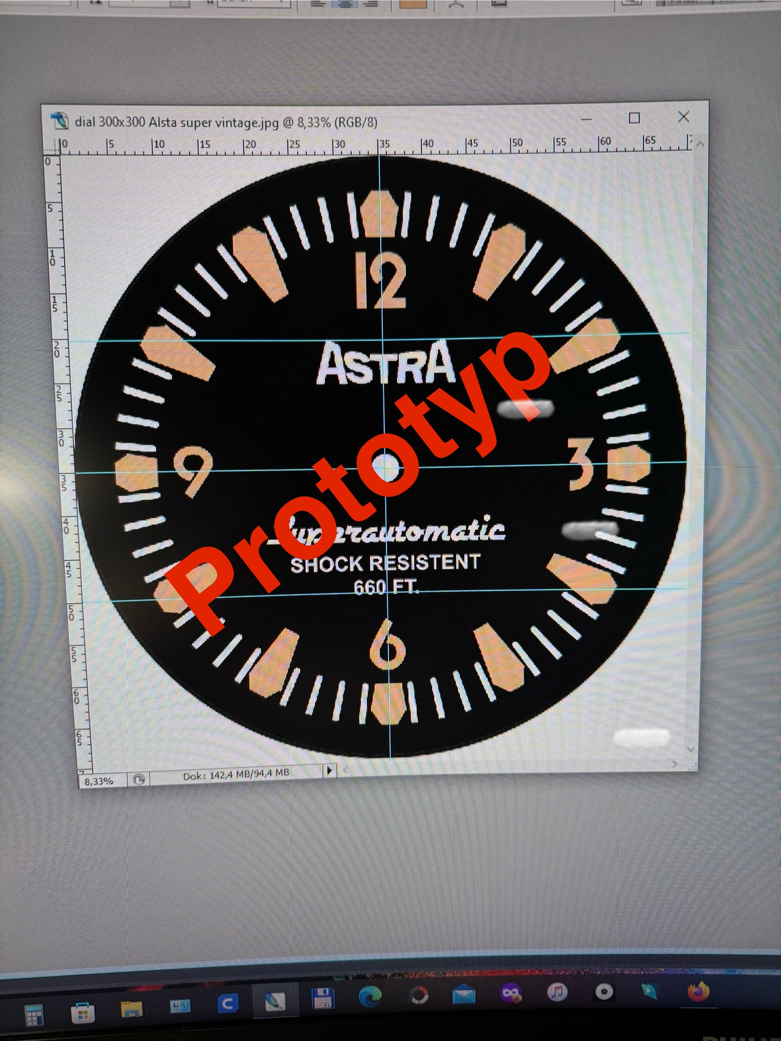 Usando Photoshop, donde creé una plantilla para mis diales hechos por mí mismo, el dial finalmente se implementó e imprimió en una lámina fluorescente.