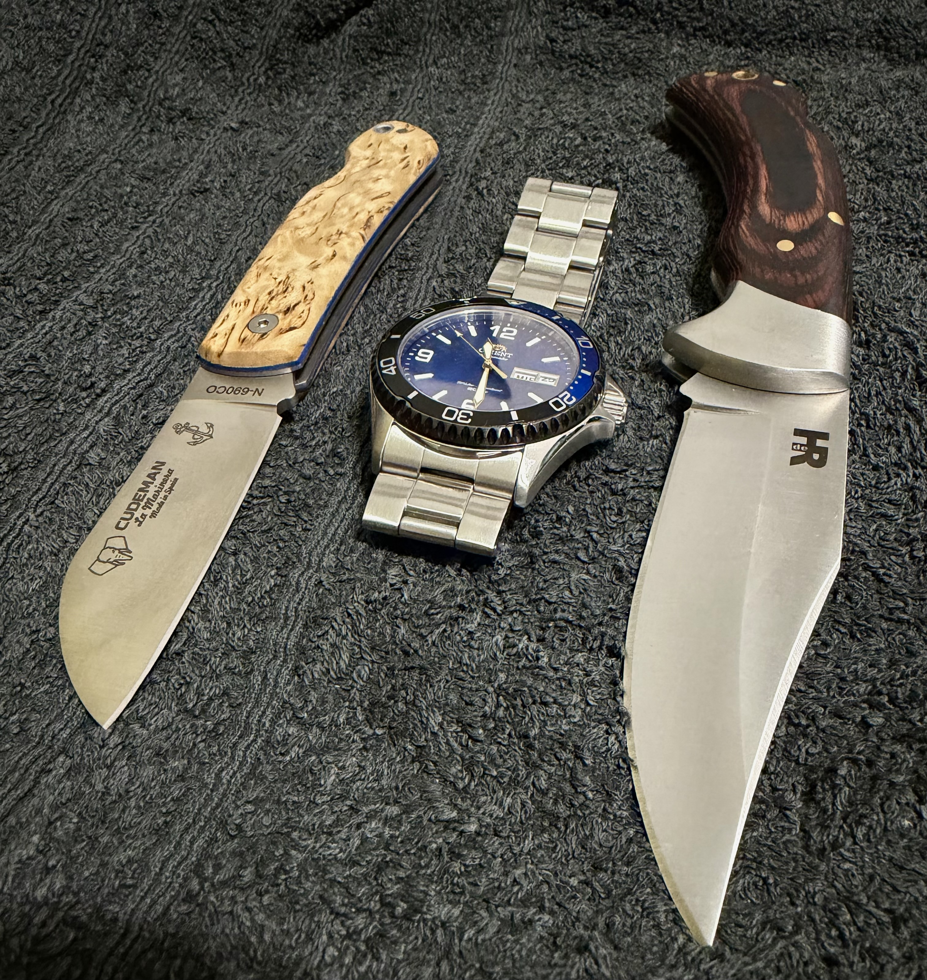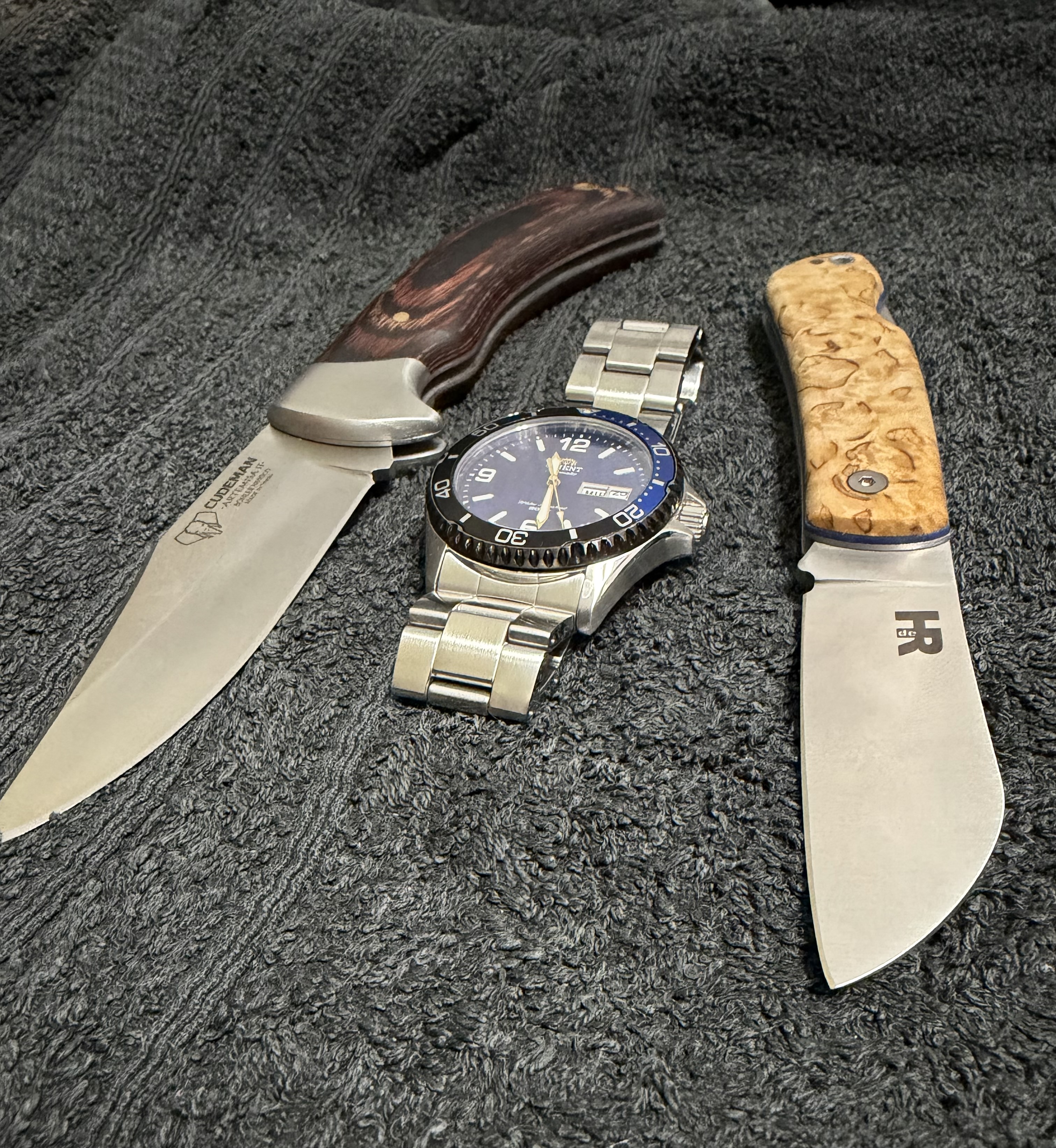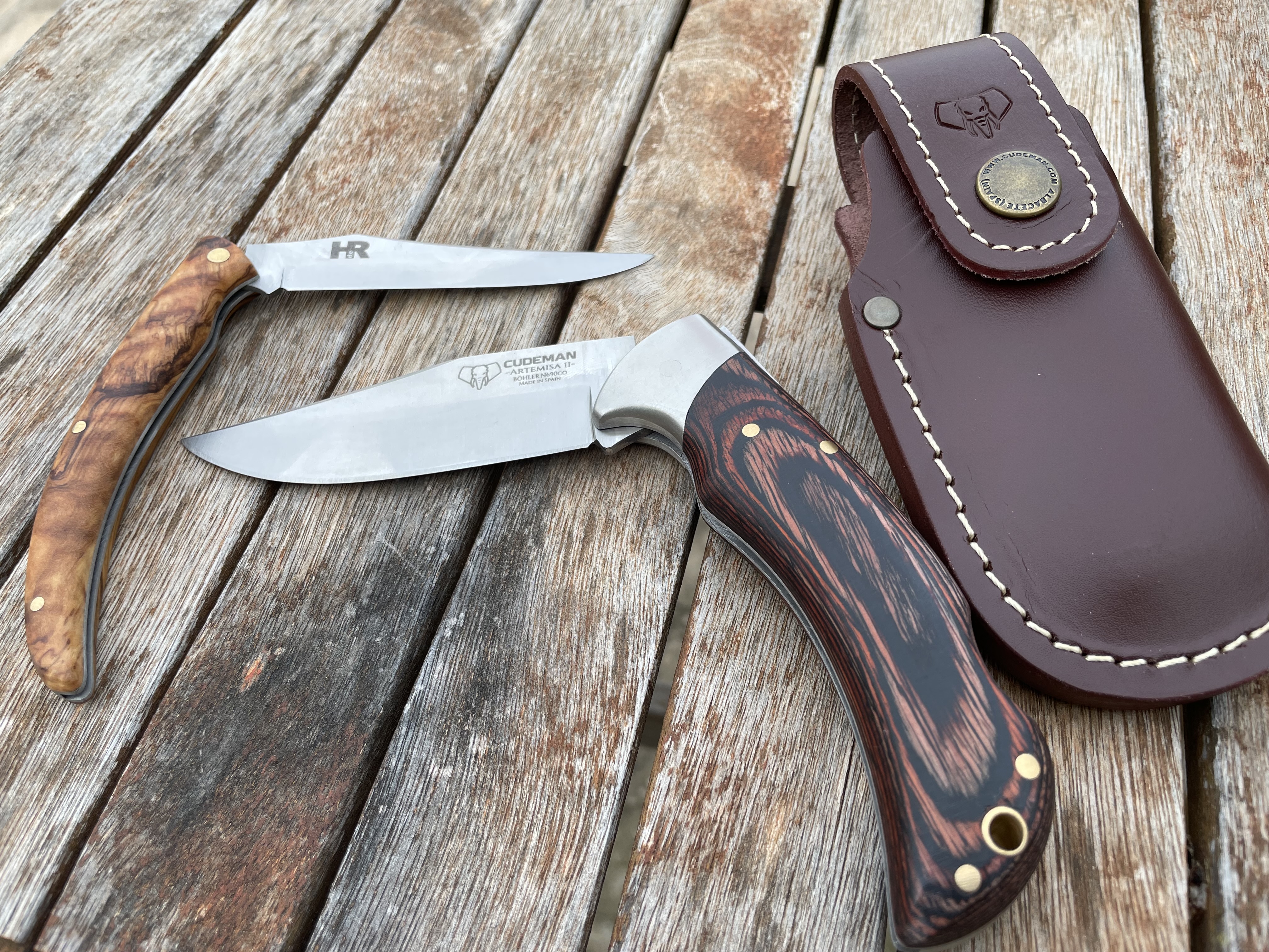 Dos estiletes geniales (uno para regalar) y el cuchillo bestial, soy más de navajas pero me encanta, contundente y el olivo precioso.