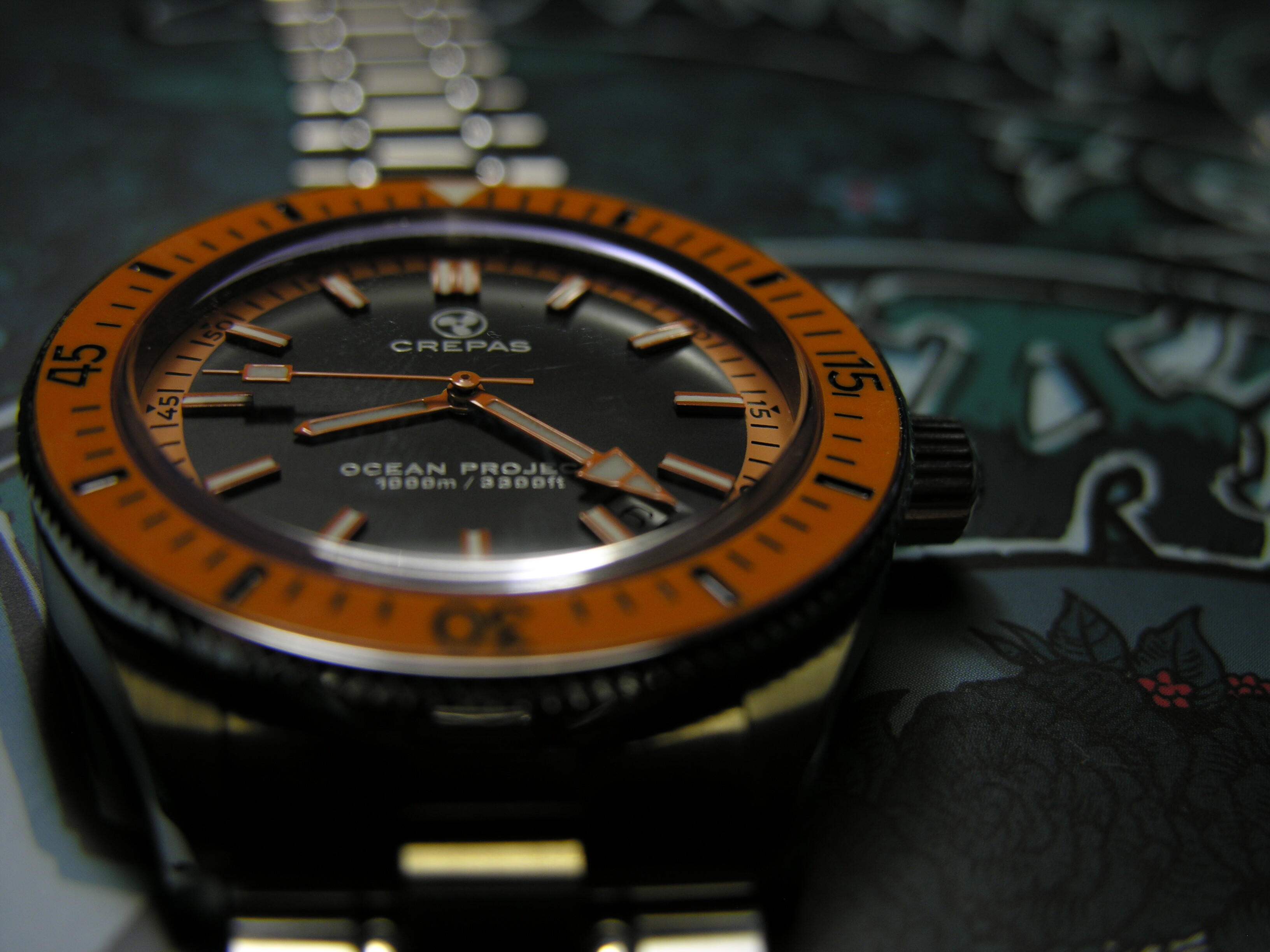 Por otra parte, al igual que en doxa el color fetiche es el naranja, creo (no lo tengo claro) que en crepas sería el naranja o el amarillo (aunque en este reloj no haya amarillo).