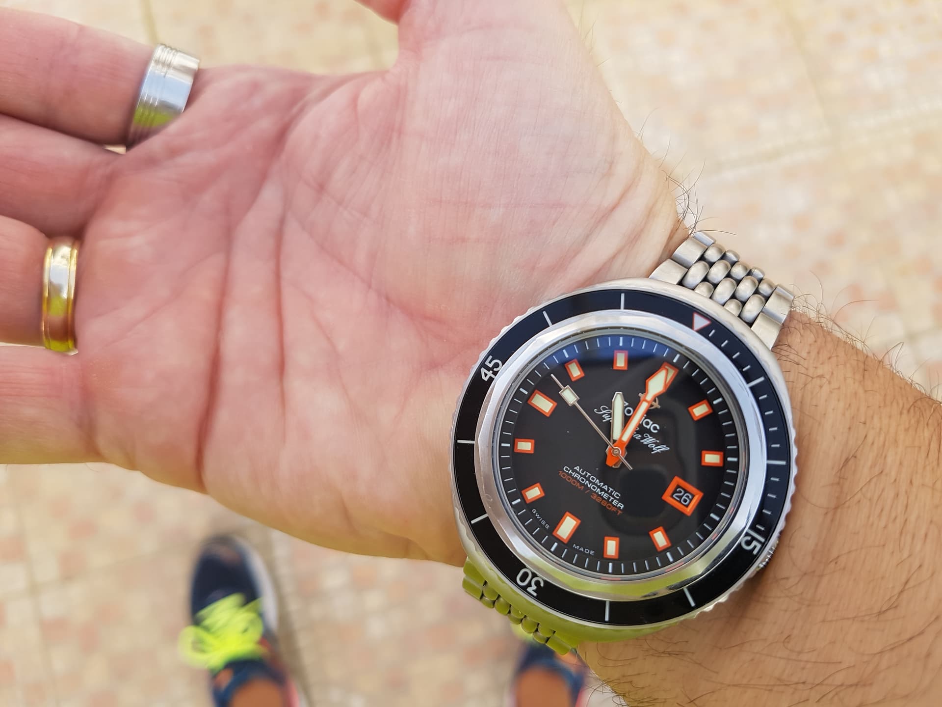 Yo en su día comparé estos dos que si bien no son pequeños tienen un tamaño bastante interesante y contenido. Te paso más o menos la comparativa completa, si te fijas en el lugs to lugs anda por 50 / 50 lo cual quiere decir que las esferas son pequeñitas o de tamaño “estandar” en 30mm. Date cuenta que el Zodiac 68 tiene un diámetro de 50 y si bien no es grande, el tamaño de la esfera lo hace parecer mayor.