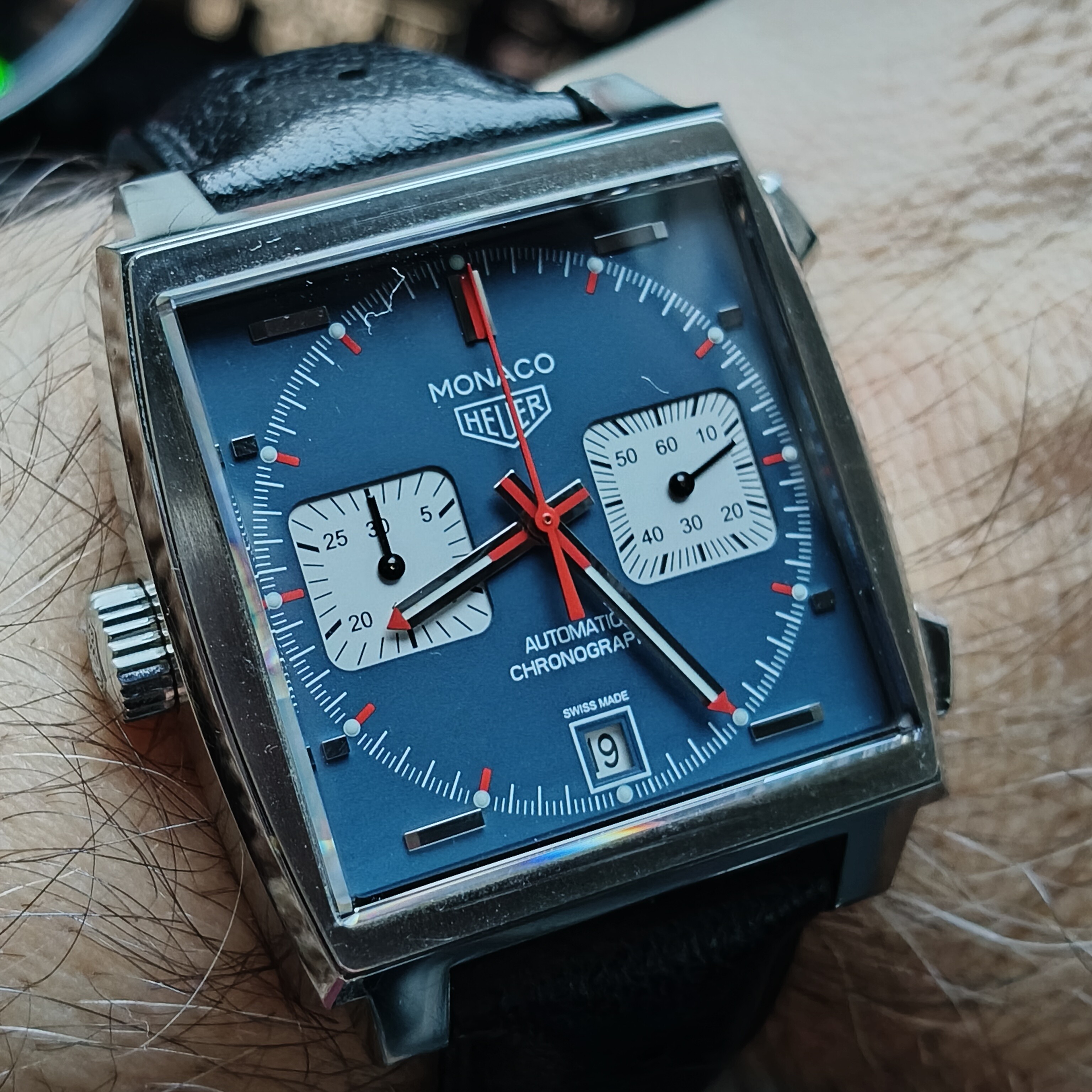 No, no tiene la corona a la izquierda… pero, a ver cómo lo digo… el Mónaco es uno de esos diseños icónicos… y tenían que haberla apañado.