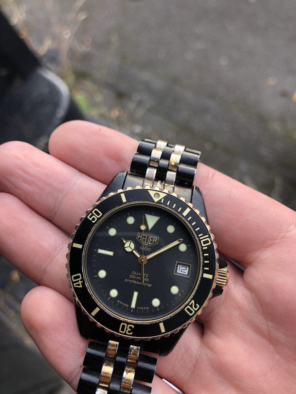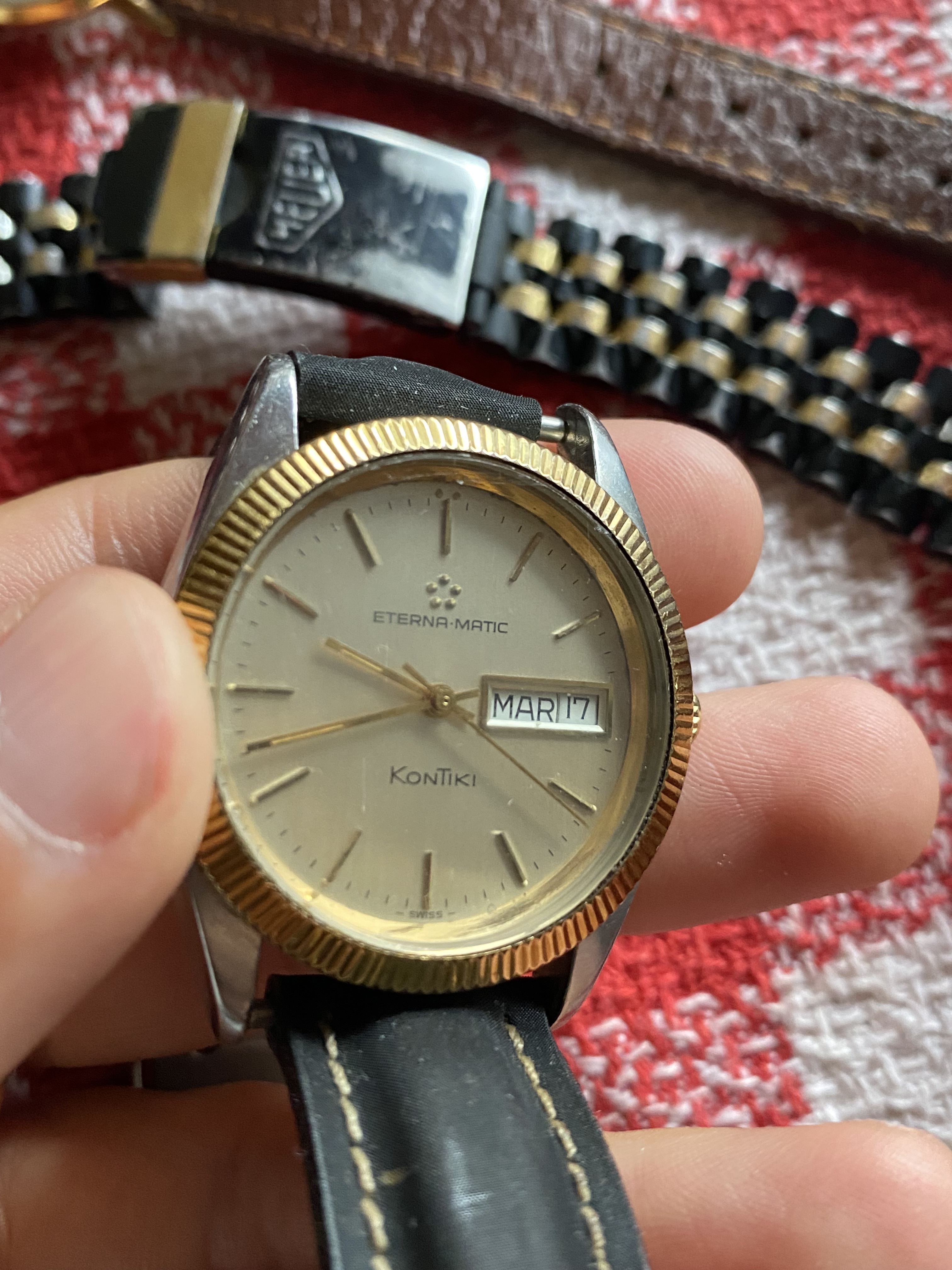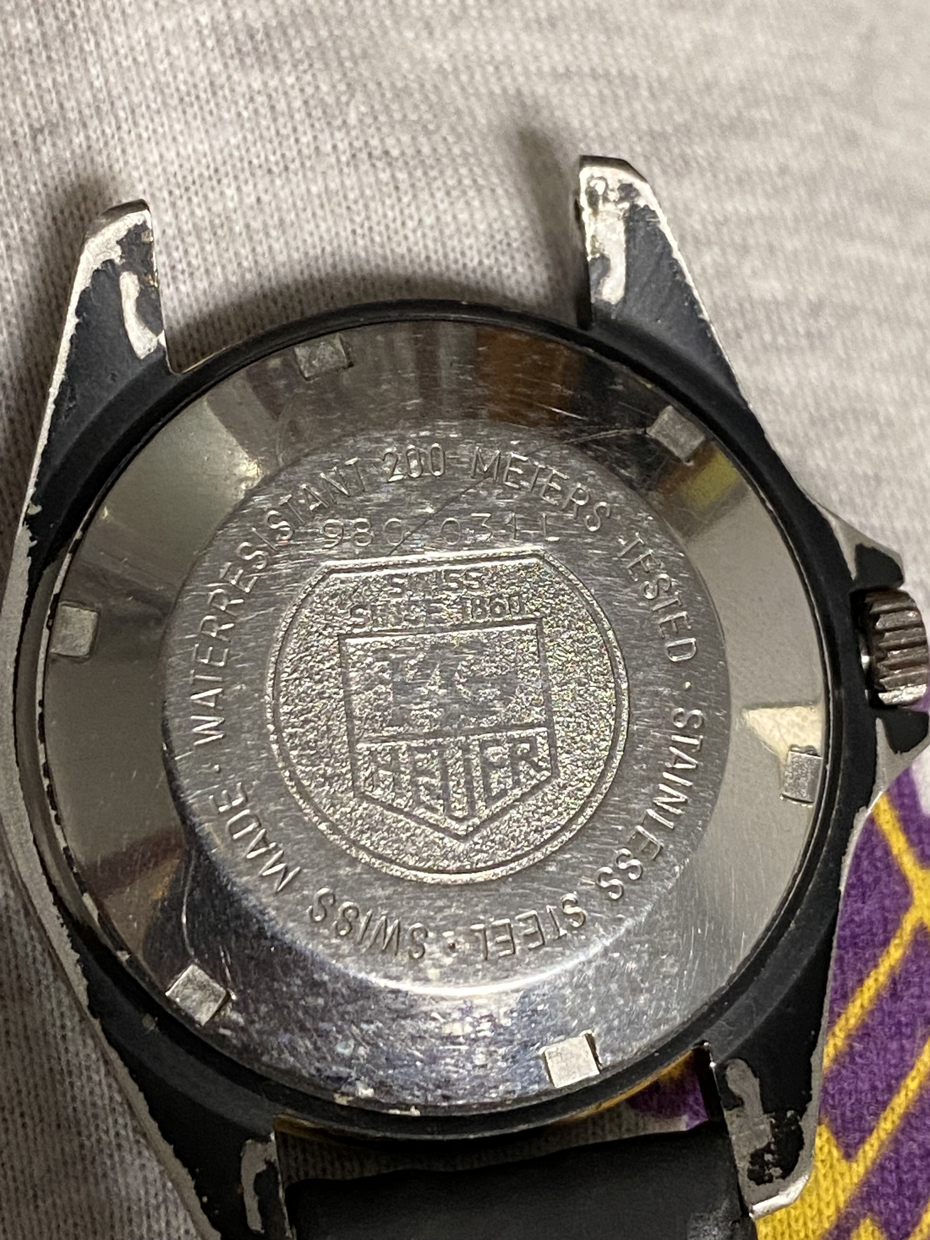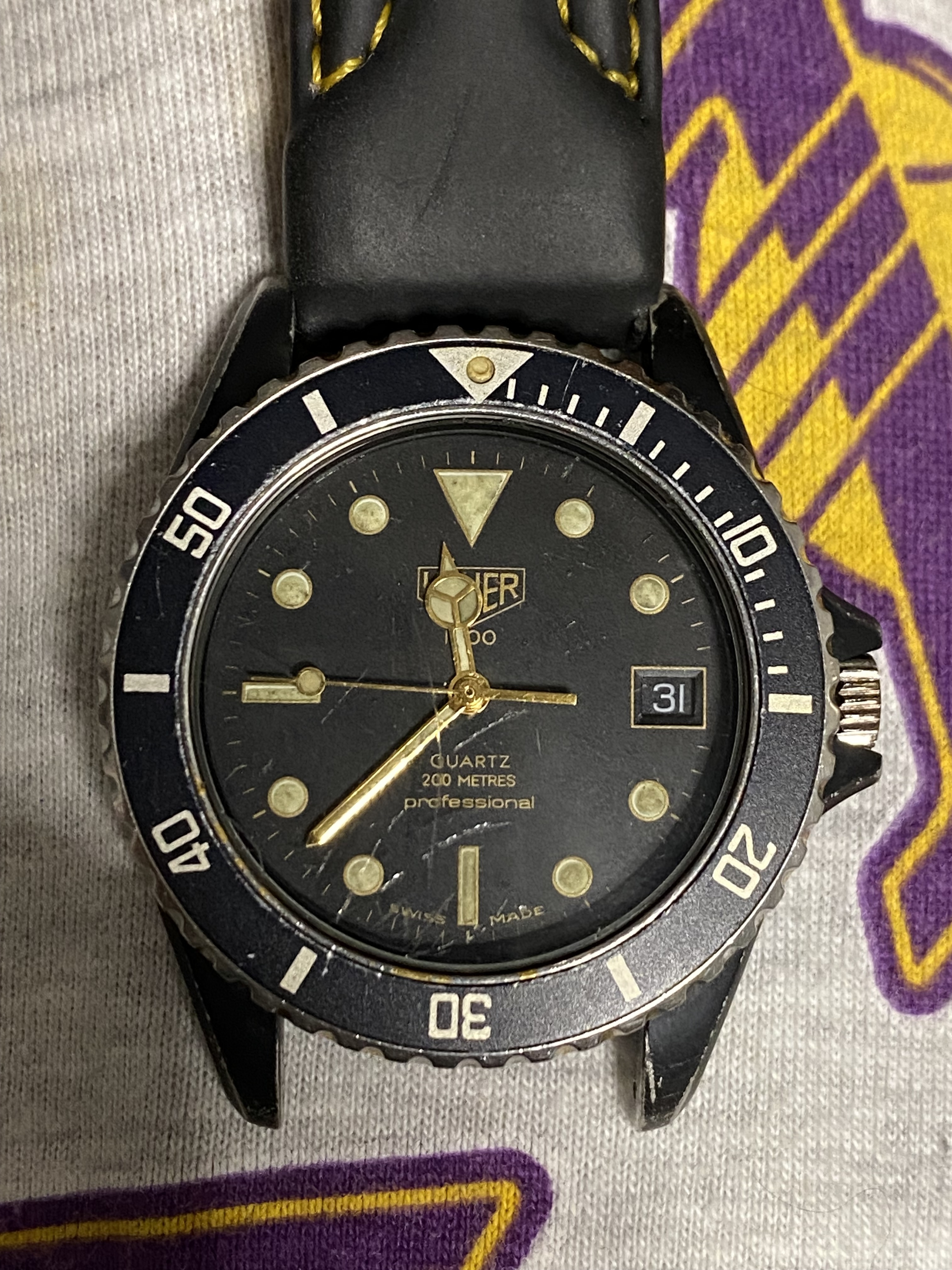 Y para no hacerme mas sangre de lo acontecido encontré este reloj de mi viejo, un tag heuer bastante desgastado en laterales de la caja con una correa de cuero que no me parece sea la original dado el buen estado de la misma.
