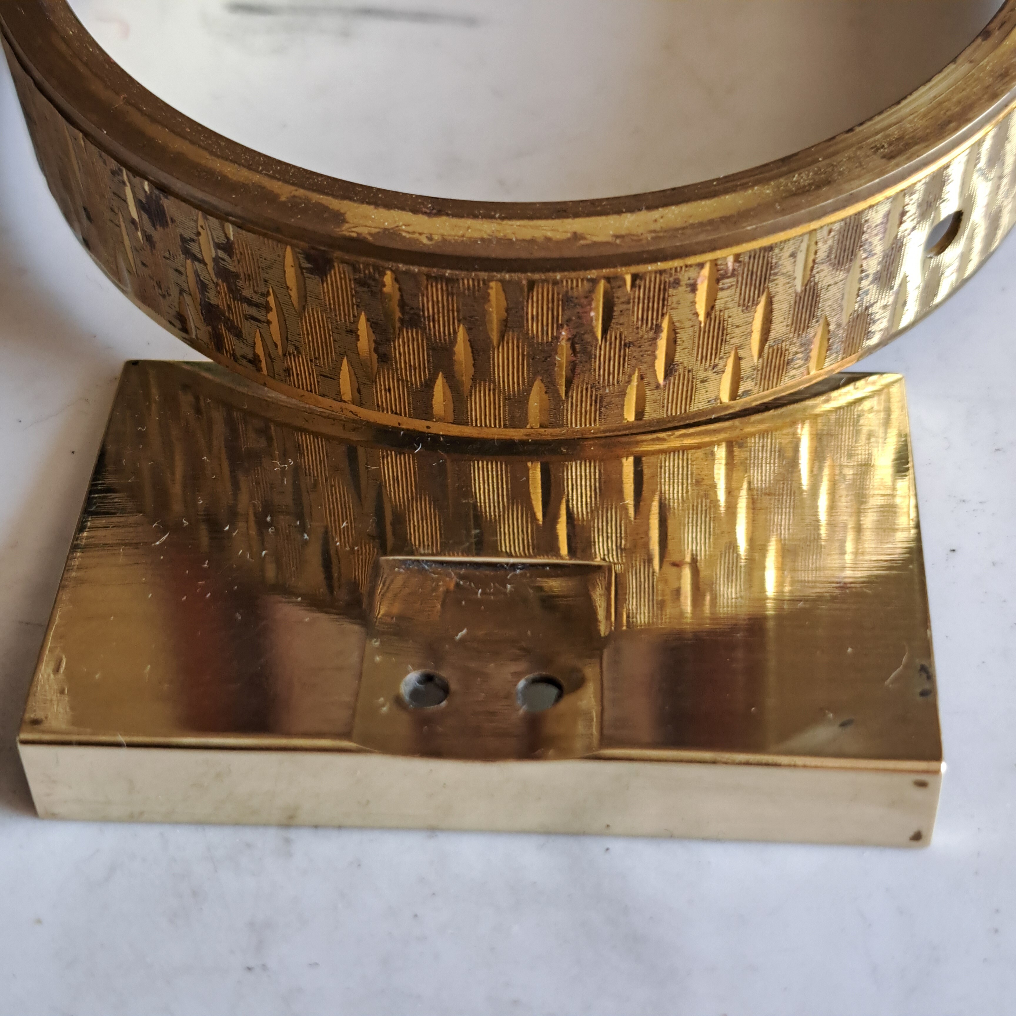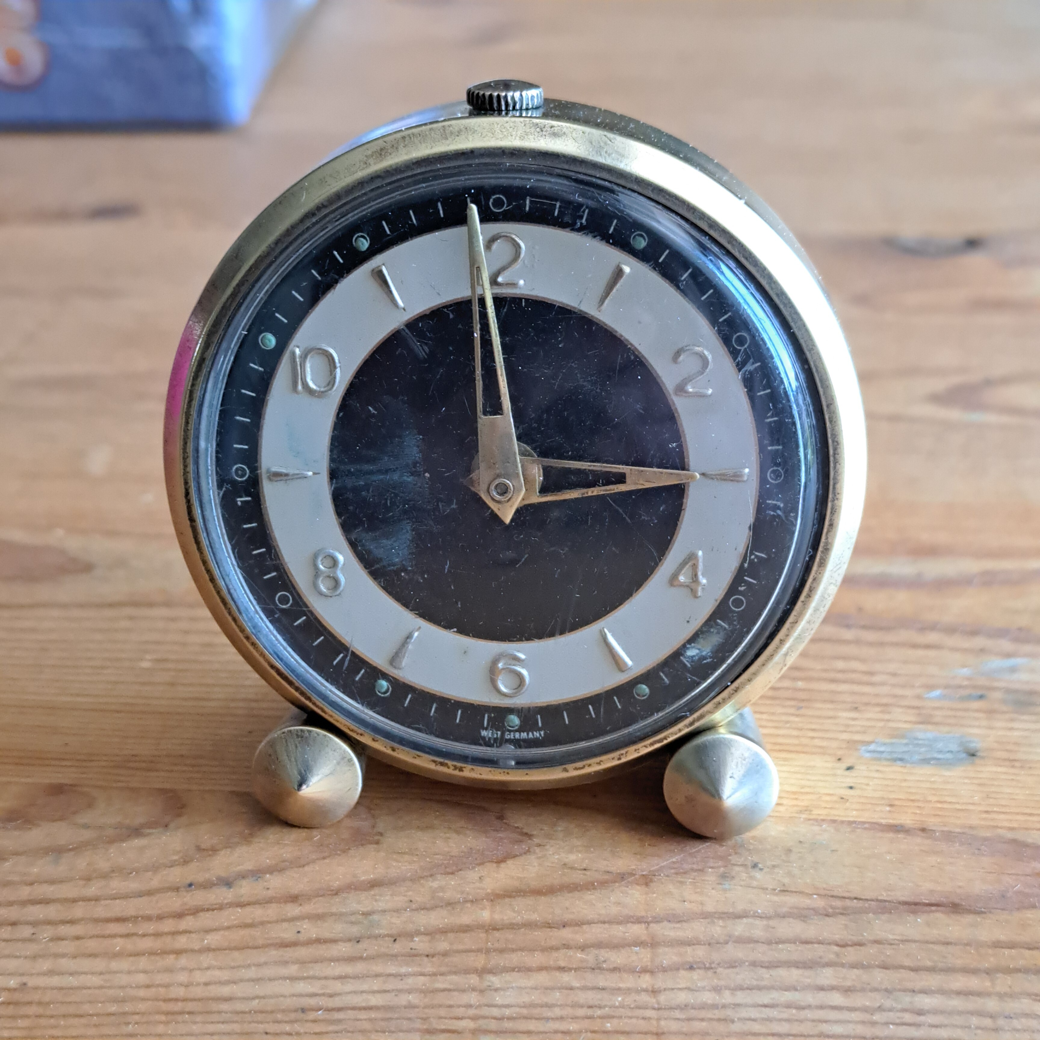 El cartón/esfera tiene varias marcas y las agujas algunos desconchones de pintura.